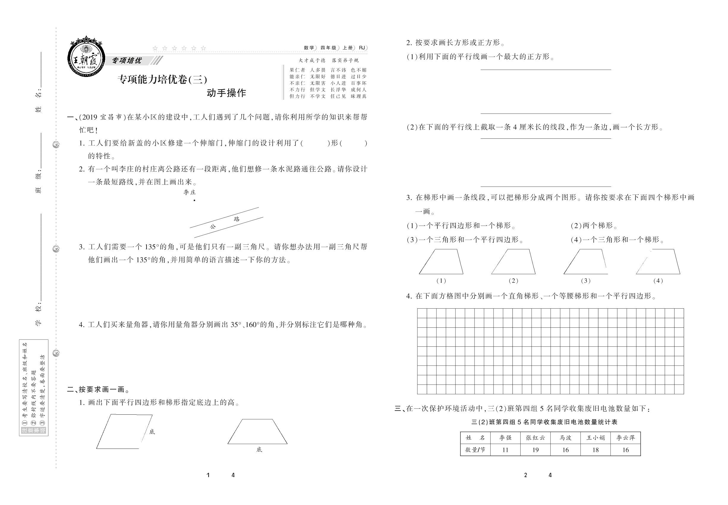 2020上册四年级数学人教版 专项能力培优卷(三) 动手操作