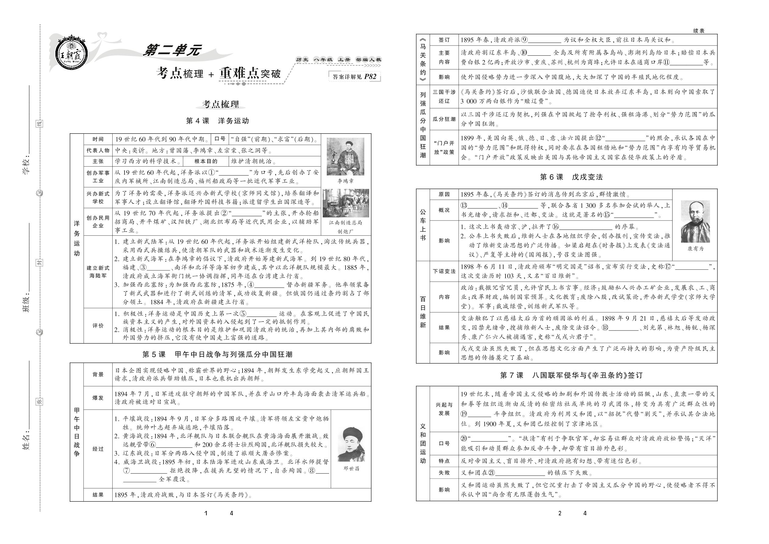 2020上册八年级历史人教版 第二单元 考点梳理+重难点突破