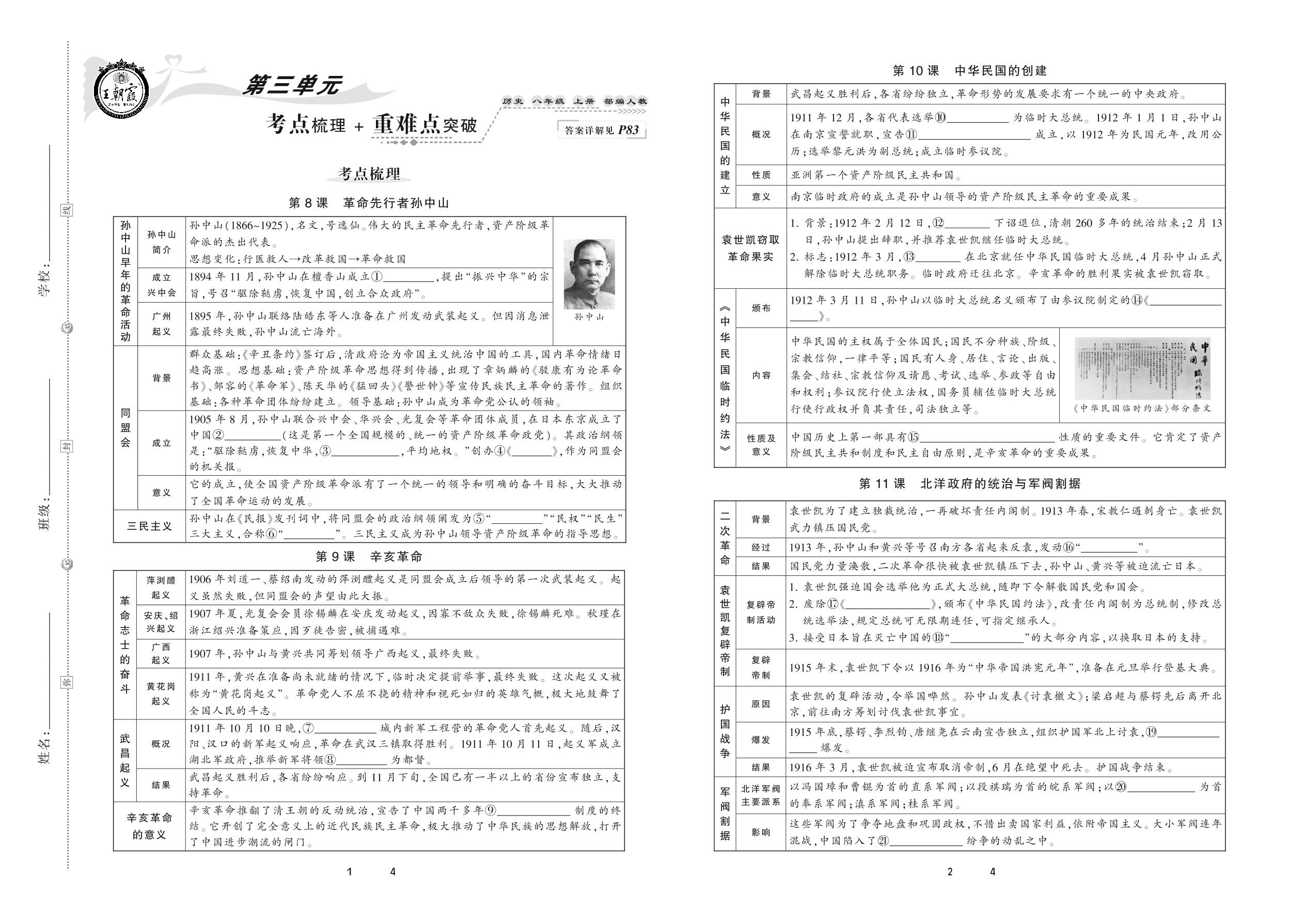 2020上册八年级历史人教版 第三单元 考点梳理+重难点突破
