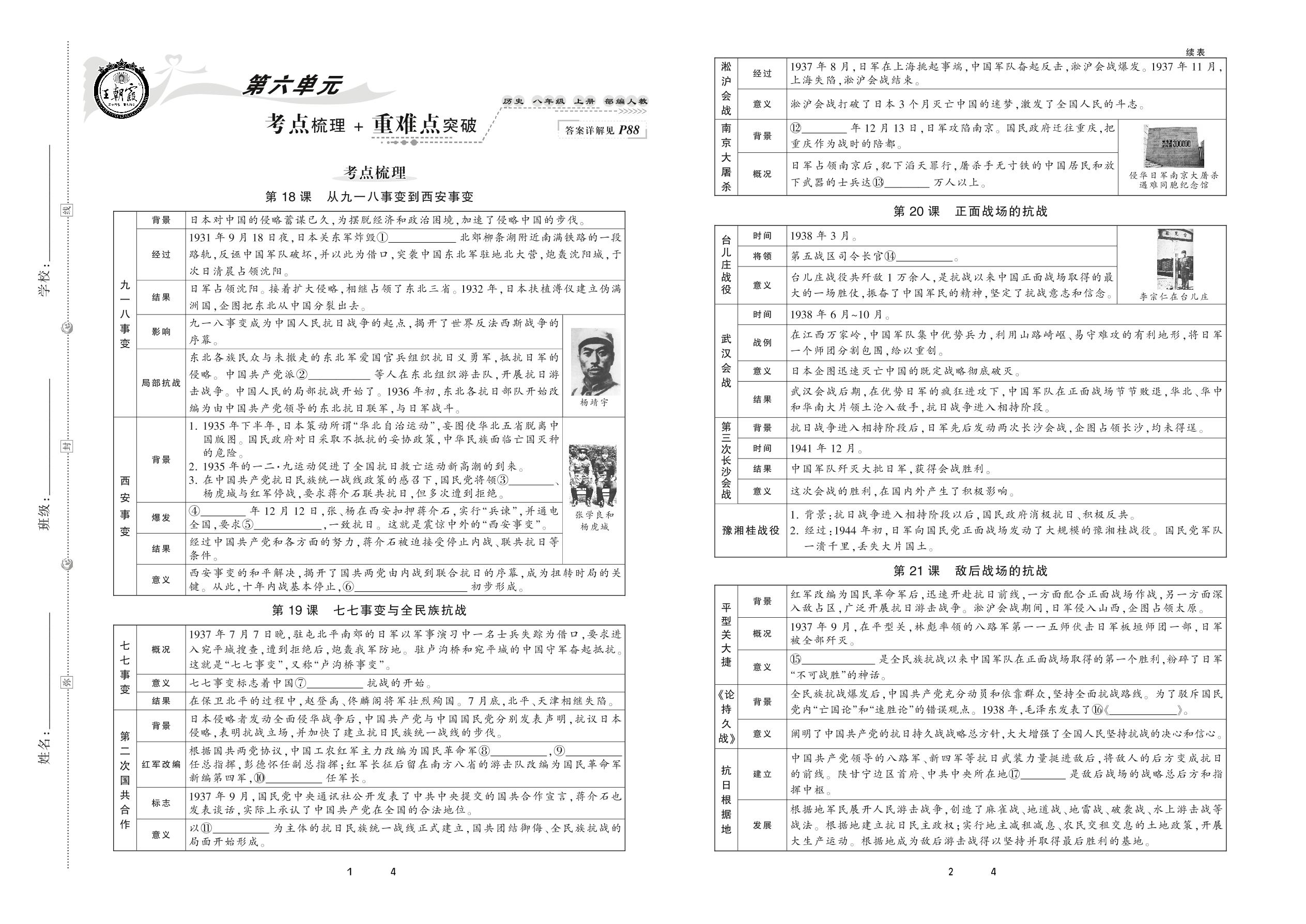 2020上册八年级历史人教版 第六单元 考点梳理+重难点突破