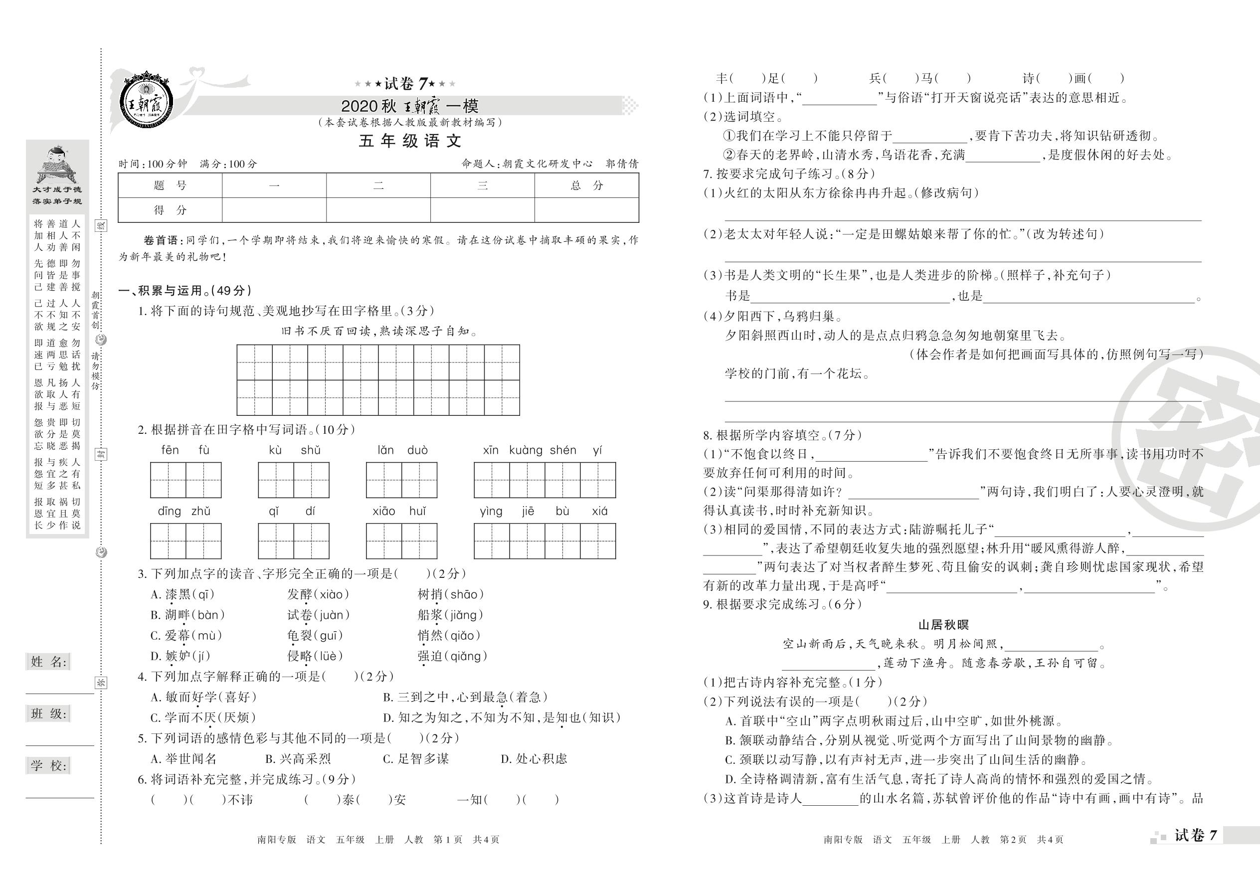 王朝霞期末模拟卷五年级上册语文(人教版)_R210801184703【7】