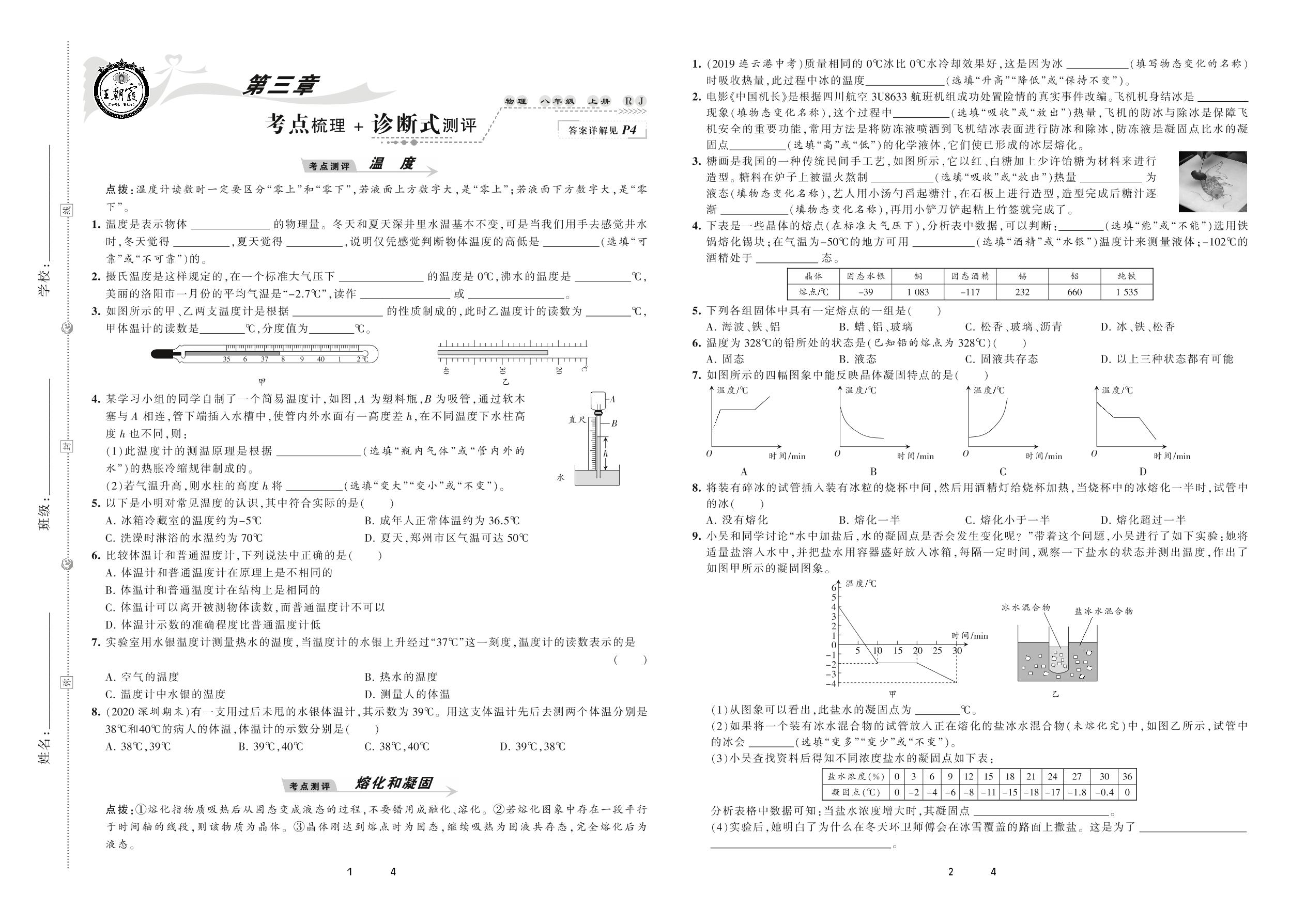 2020上册八年级物理人教版 第三章 考点梳理 + 诊断式测评