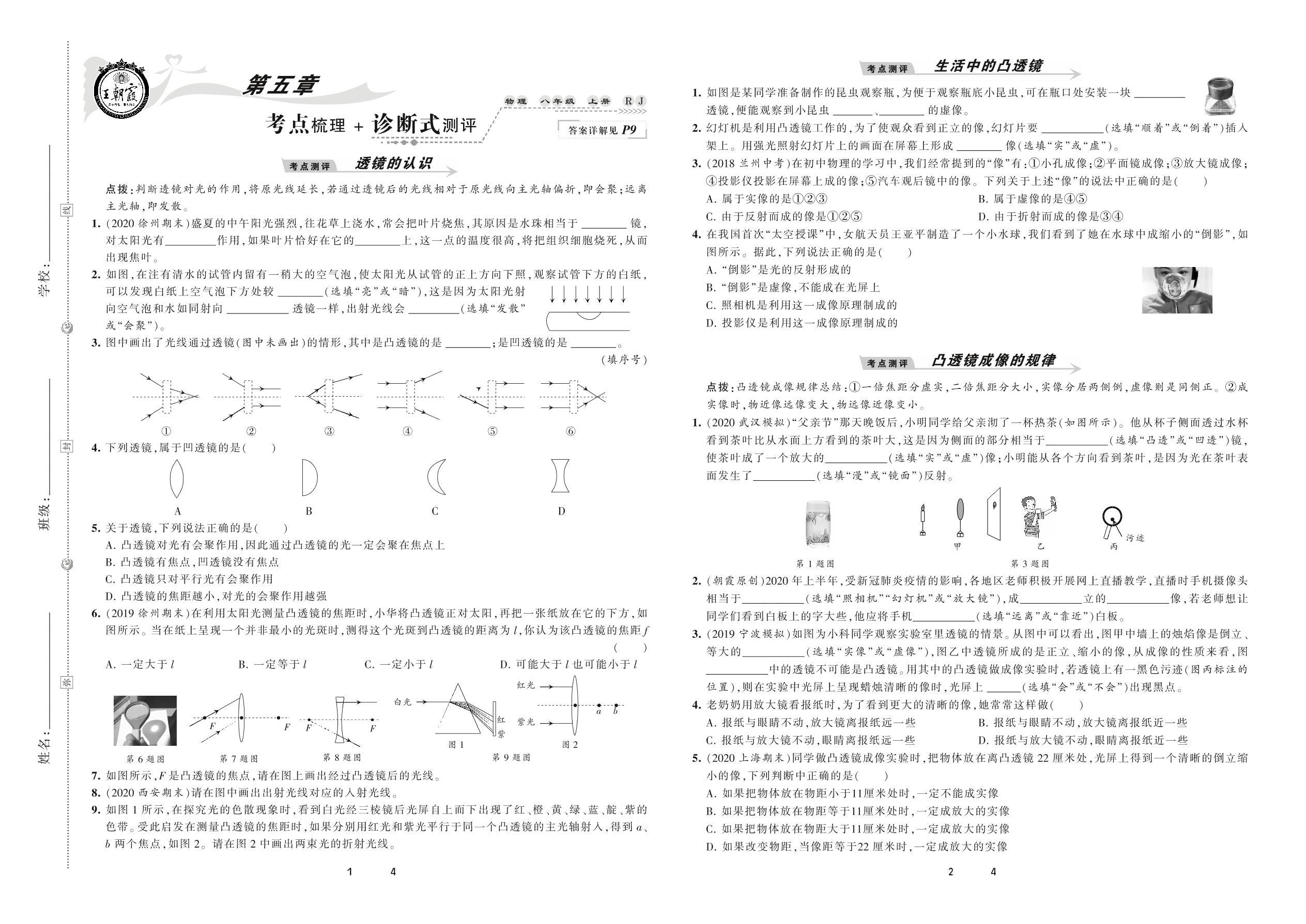 2020上册八年级物理人教版 第五章 考点梳理 + 诊断式测评