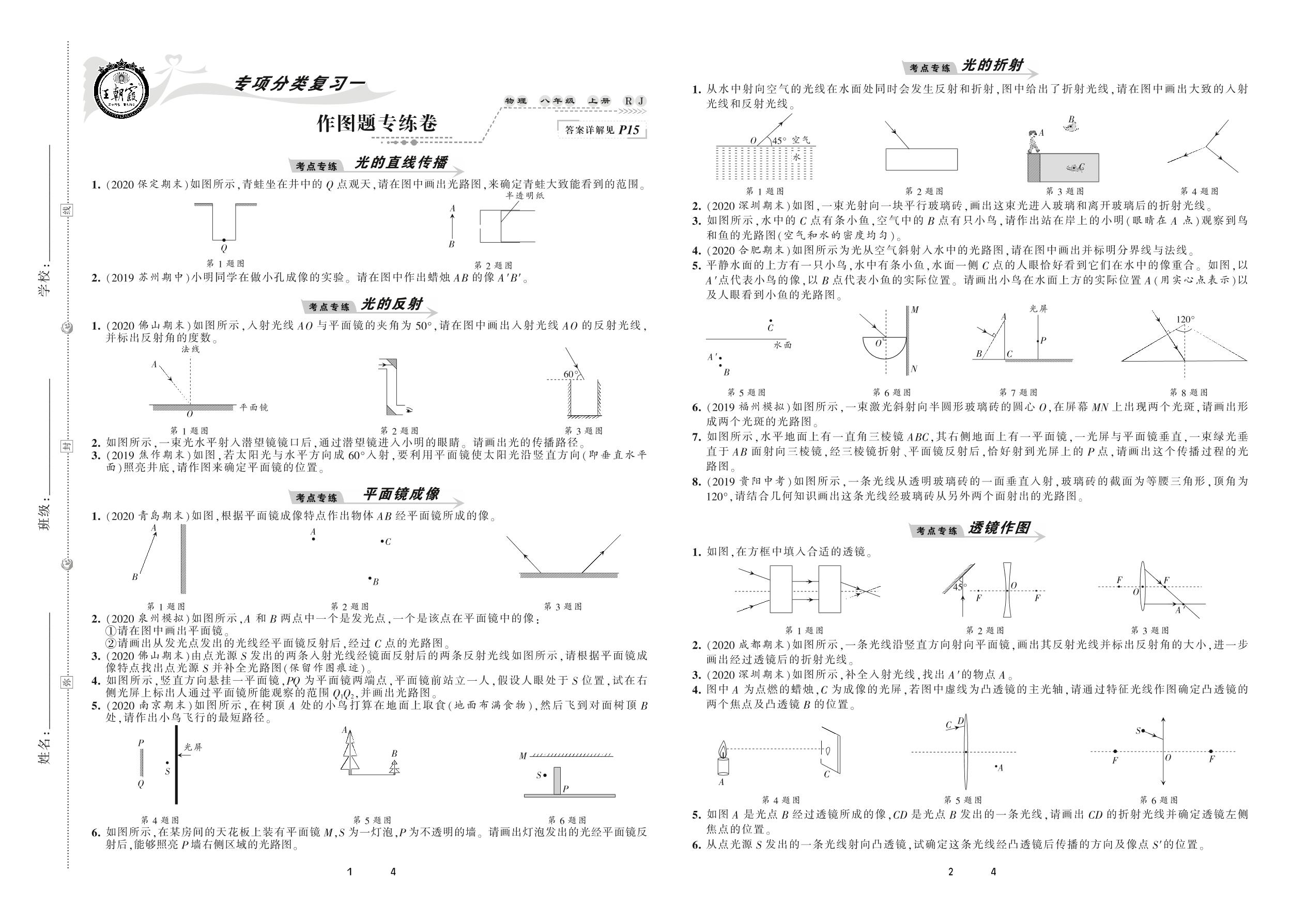 2020上册八年级物理人教版 作图题专练卷