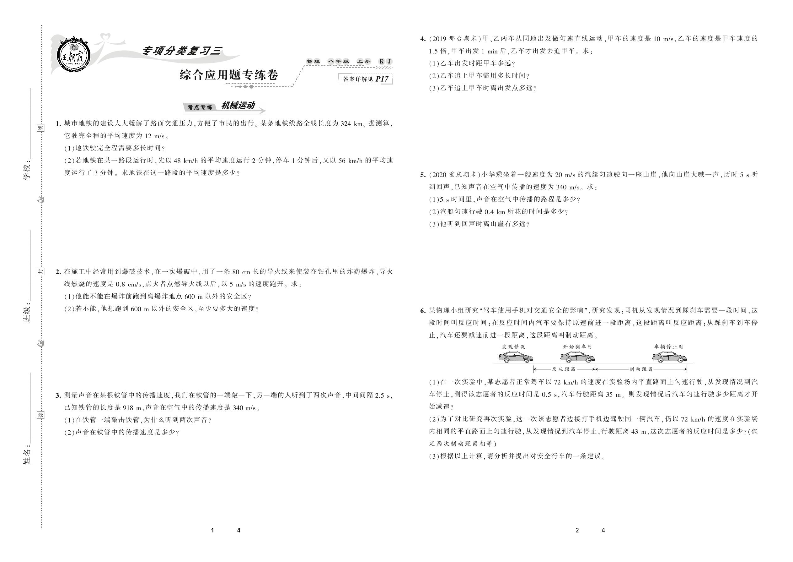 八年级物理人教版上册专项卷
