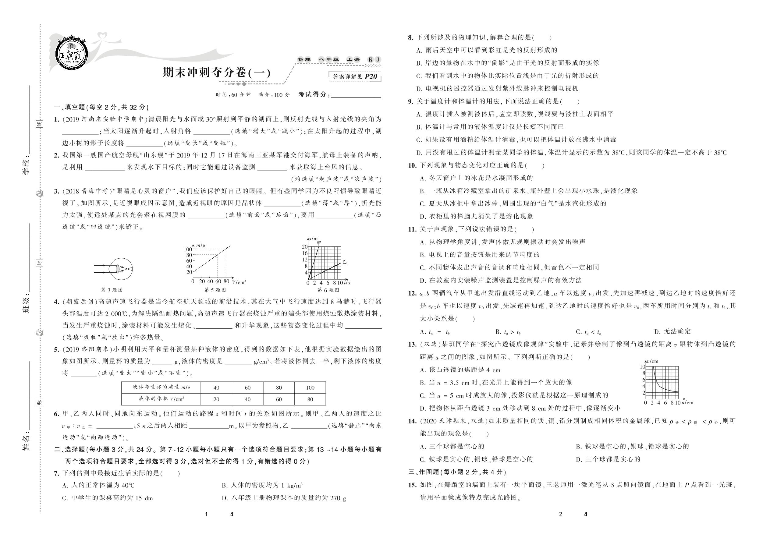 2020上册八年级物理人教版 期末冲刺夺分卷(一)