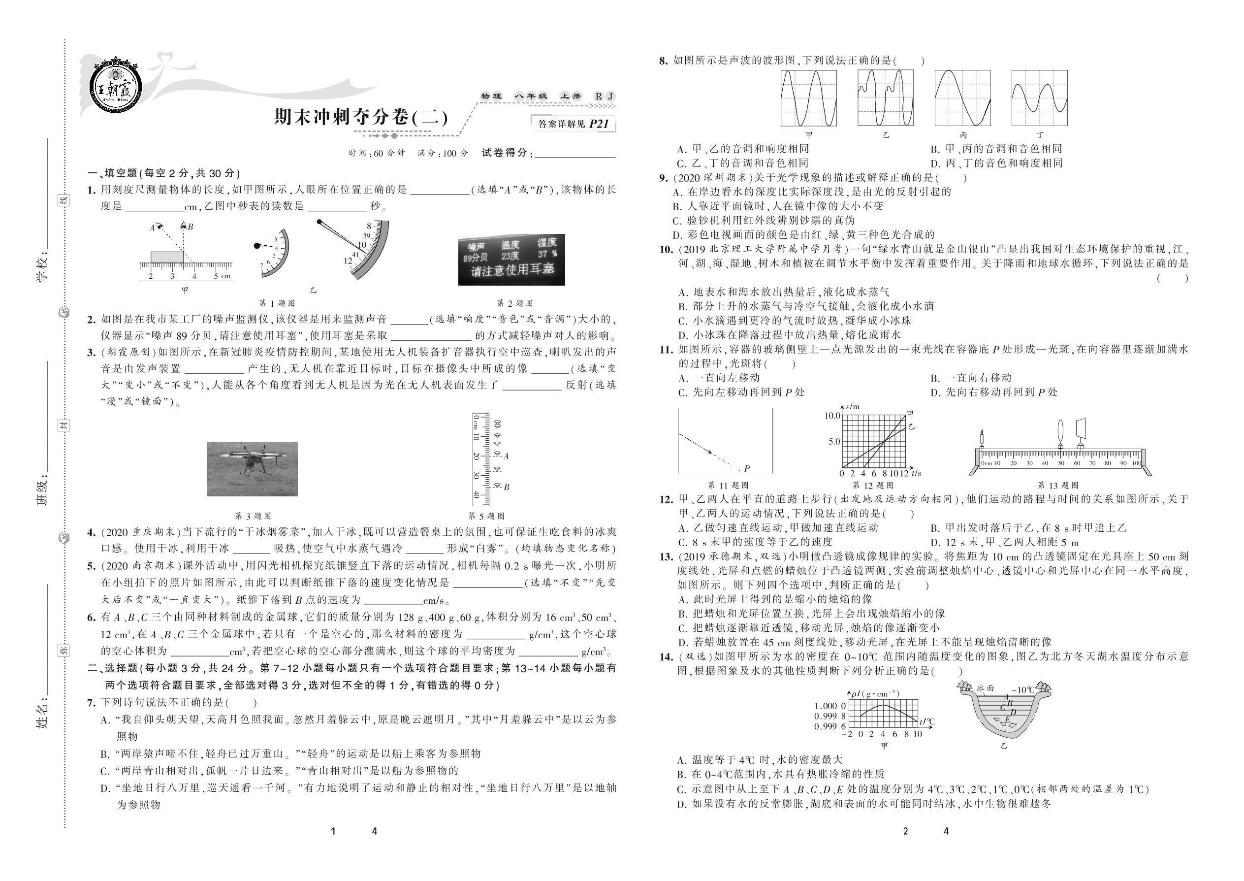 2020上册八年级物理人教版 期末冲刺夺分卷(二)
