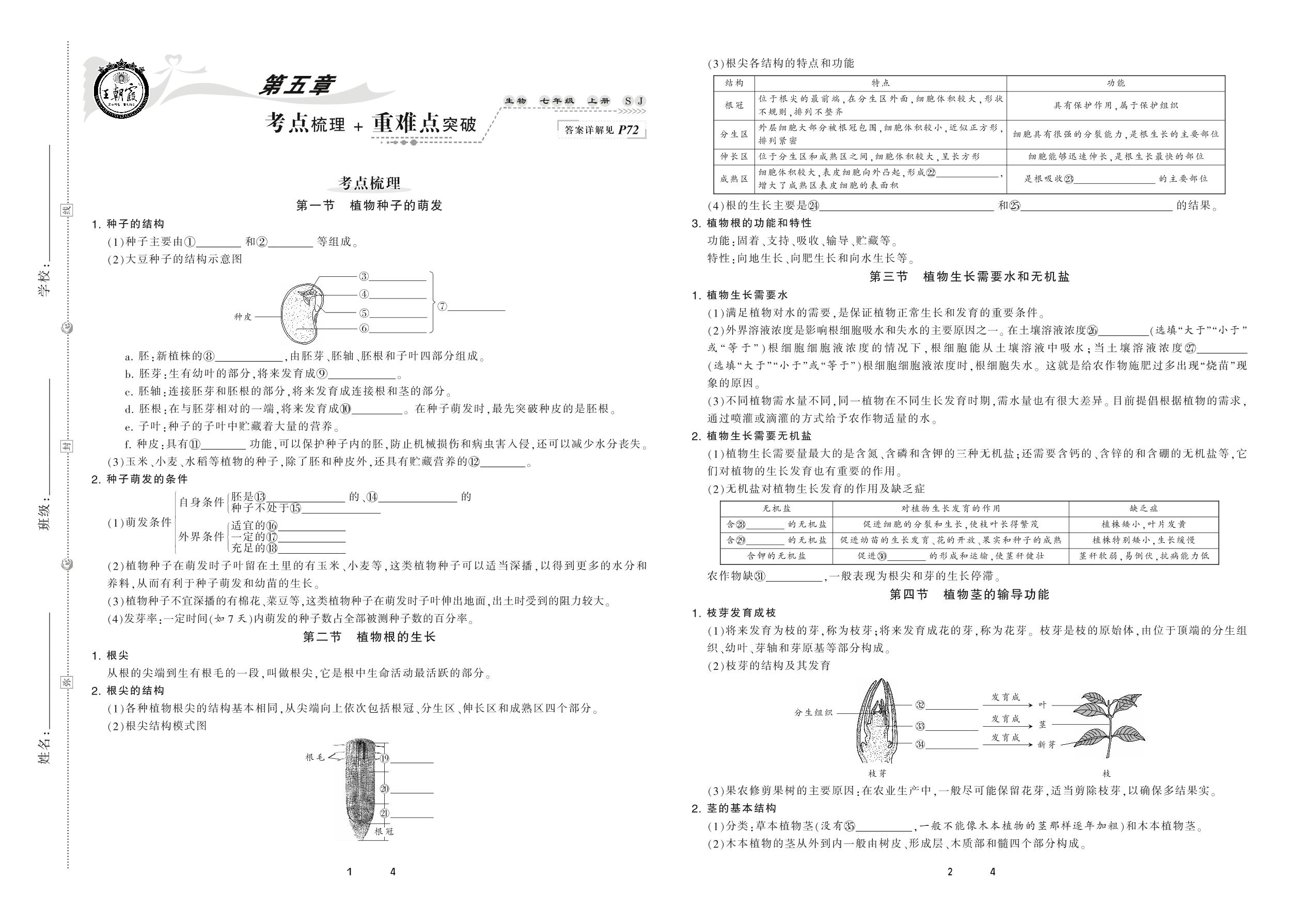 2020上册七年级生物苏教版 第五章 考点梳理 + 重难点突破