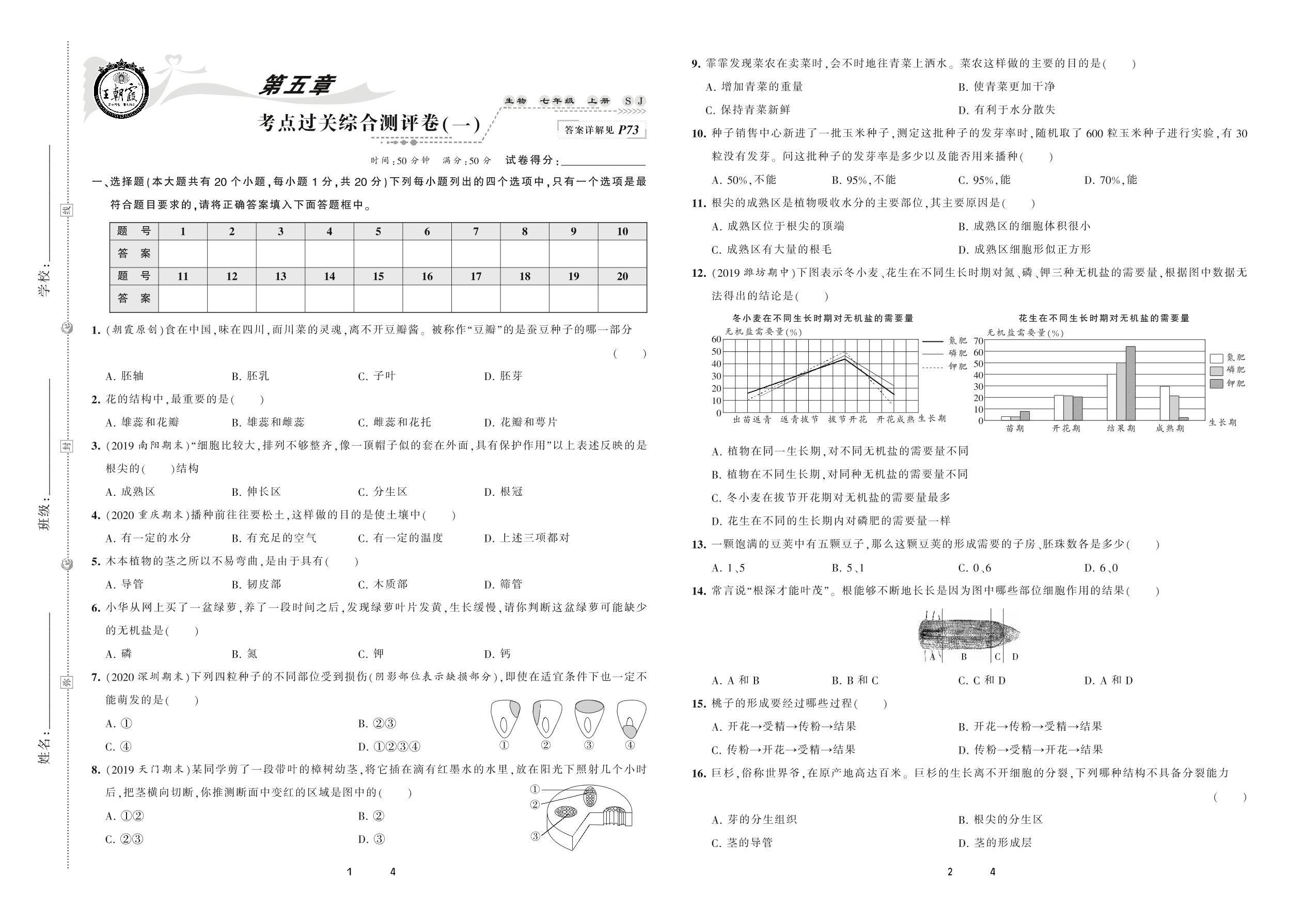 2020上册七年级生物苏教版 第五章 考点过关综合测评卷(一)