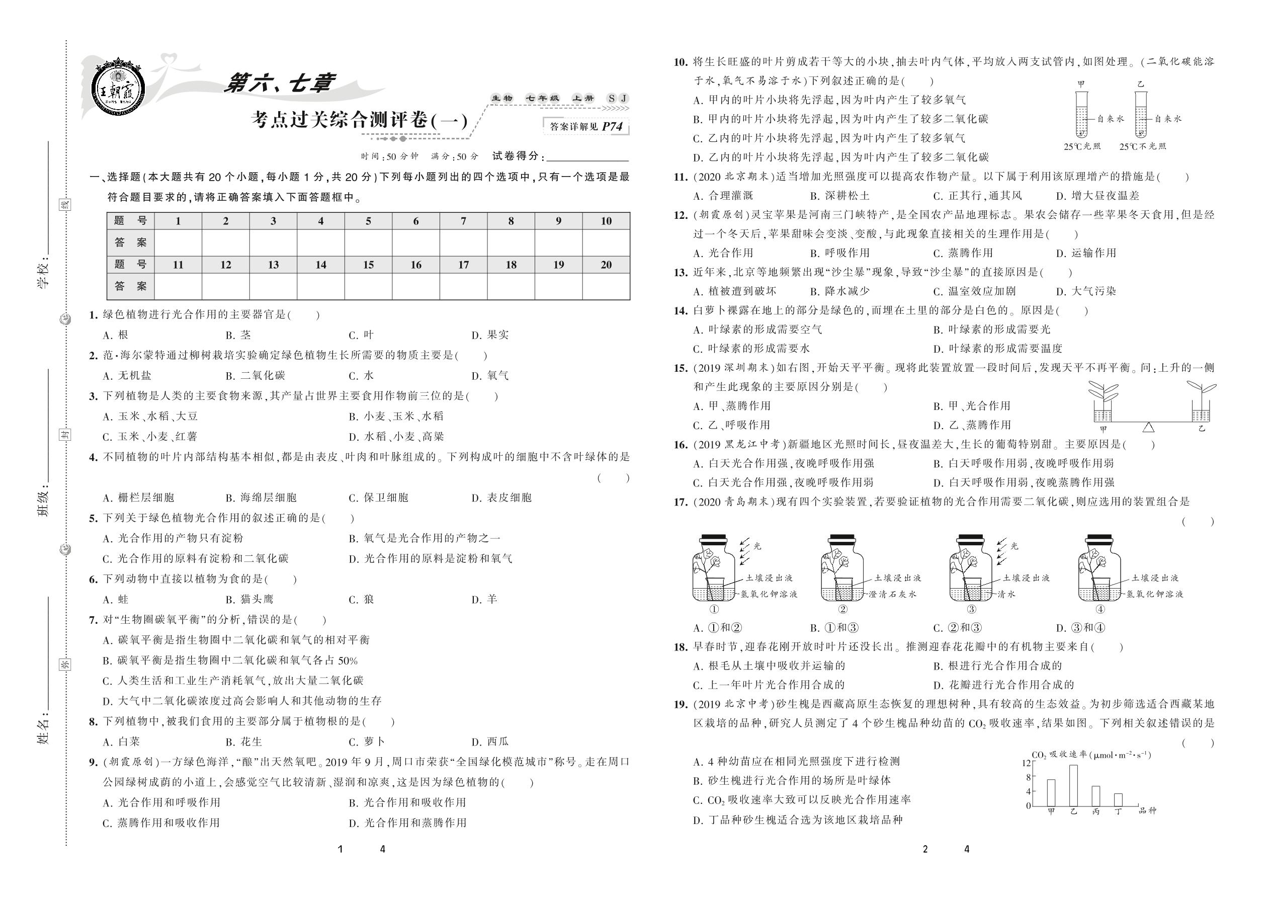 2020上册七年级生物苏教版 第六、七章 考点过关综合测评卷(一)