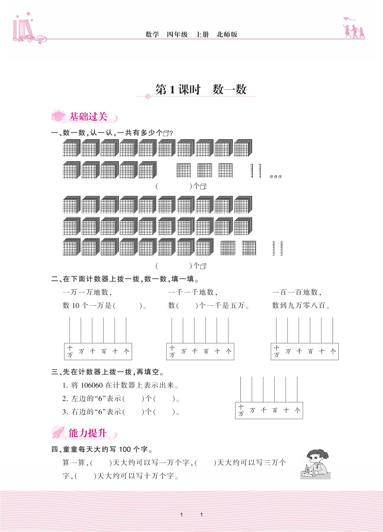 2020上册四年级数学北师版 一 认识更大的数—第1课时 数一数