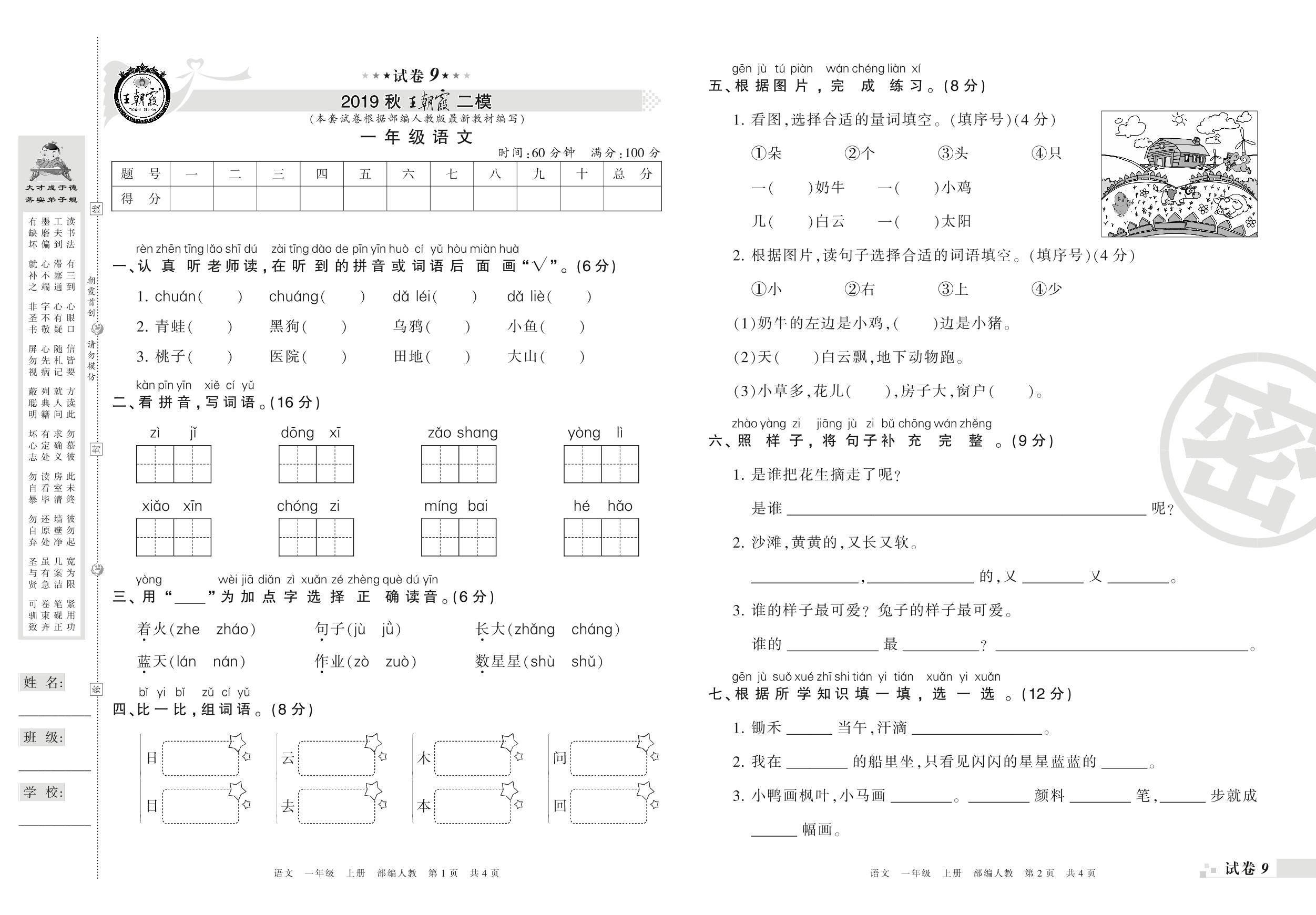 王朝霞期末模拟卷一年级上册语文(人教版)_R210731180928【9】