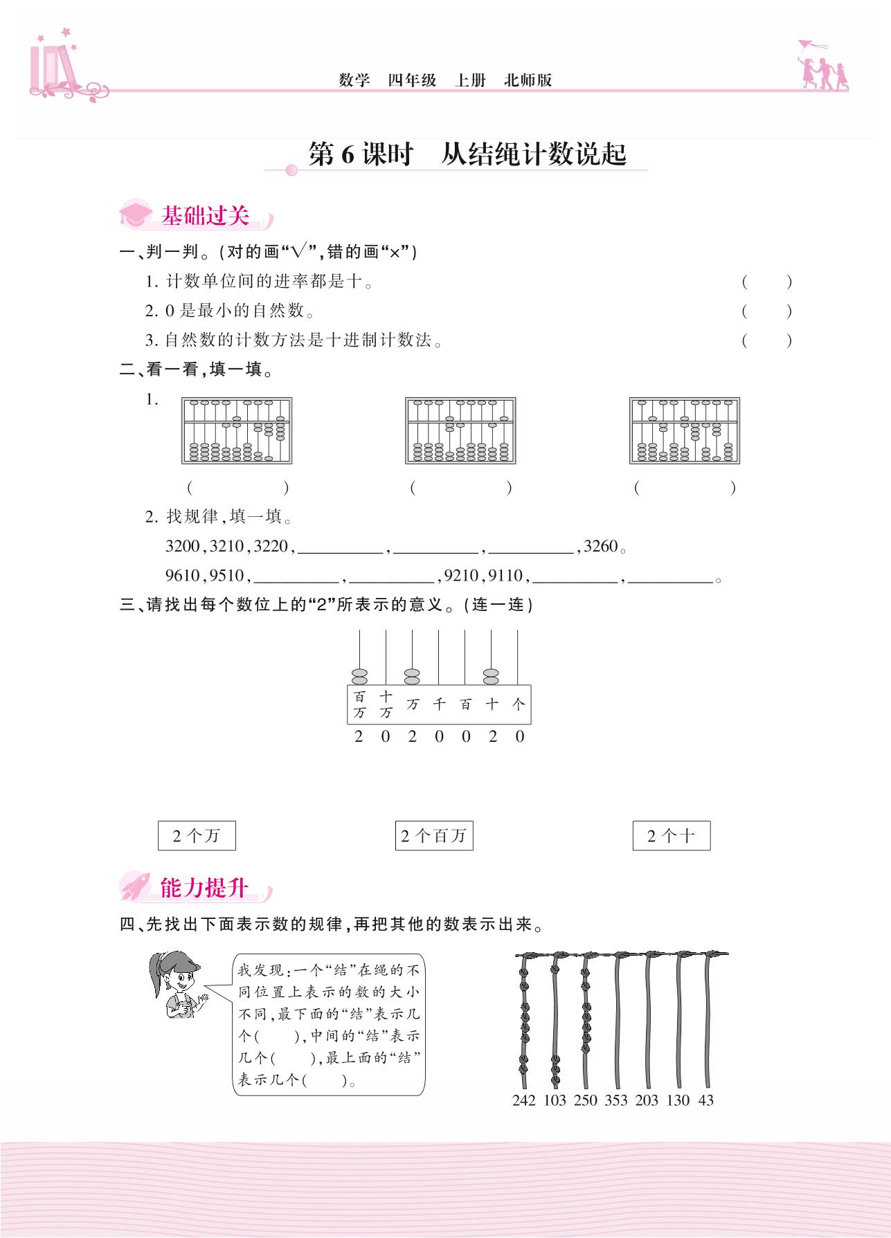 2020上册四年级数学北师版 一 认识更大的数—第6课时 从结绳计数说起