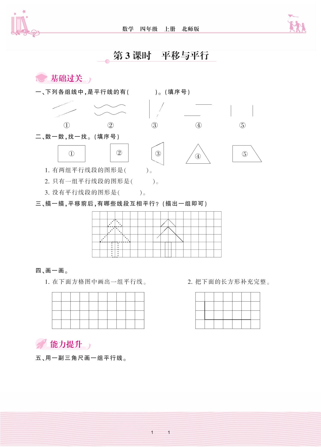 2020上册四年级数学北师版 二 线与角—第3课时 平移与平行