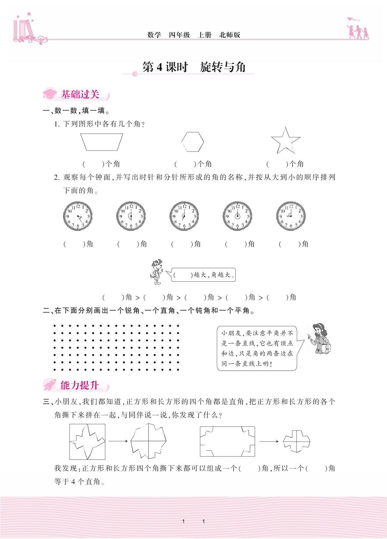 2020上册四年级数学北师版 二 线与角—第4课时 旋转与角