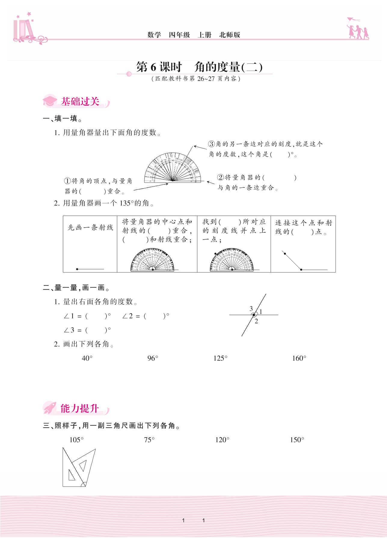 2020上册四年级数学北师版 二 线与角—第6课时 角的度量(二)