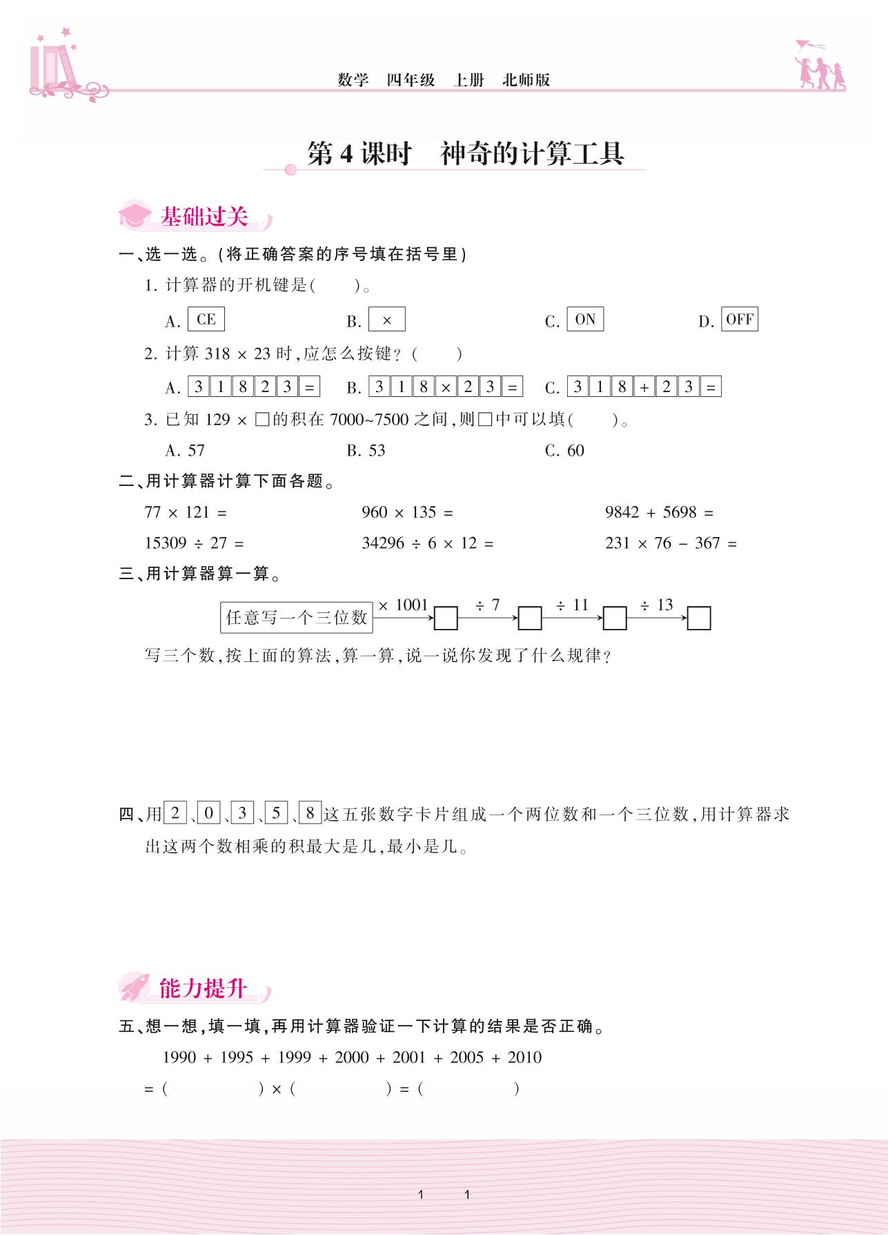 2020上册四年级数学北师版 三 乘法—第4课时 神奇的计算工具