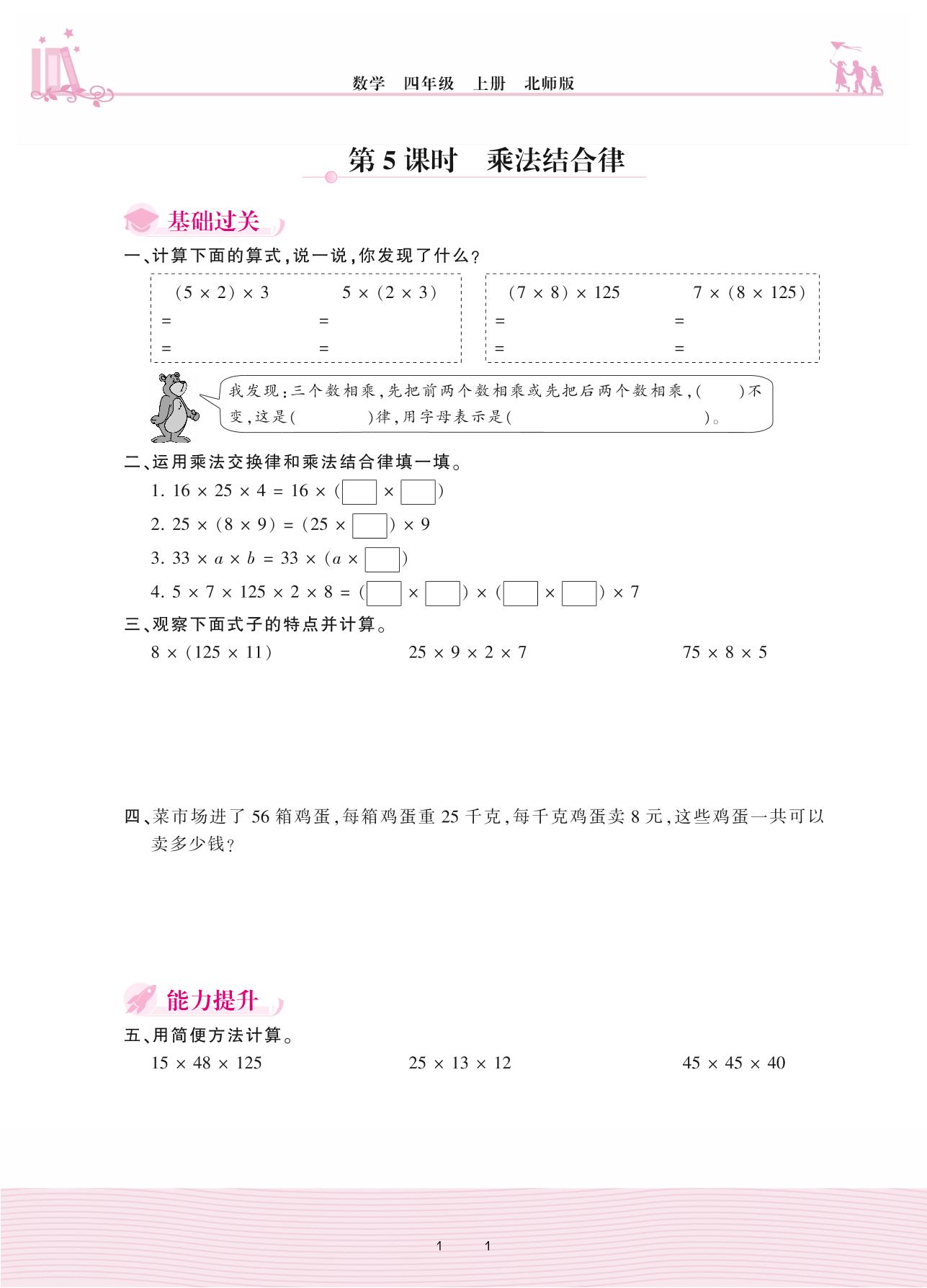 2020上册四年级数学北师版 四 运算律—第5课时 乘法结合律