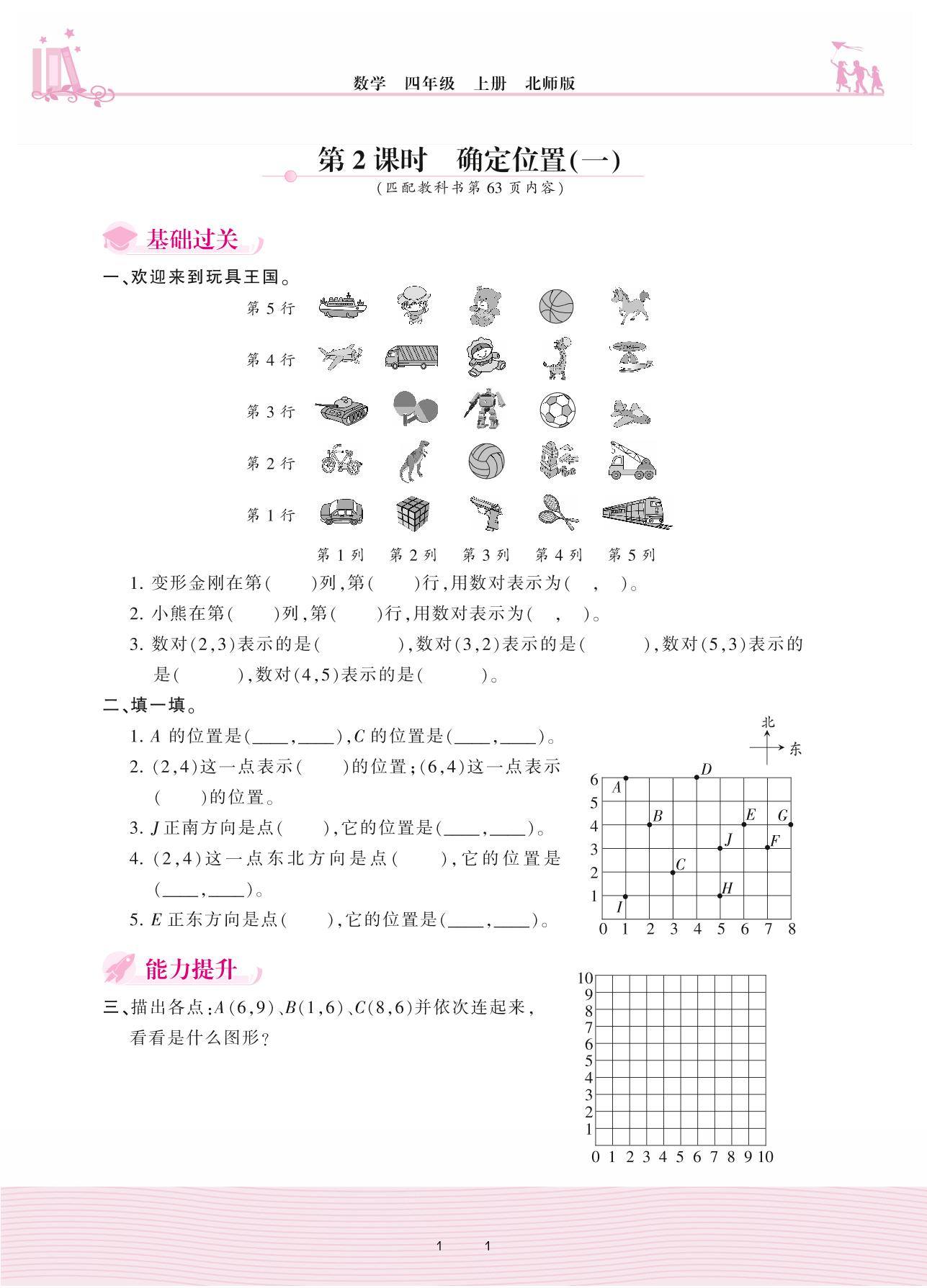 2020上册四年级数学北师版 五 方向与位置—第2课时 确定位置(一)