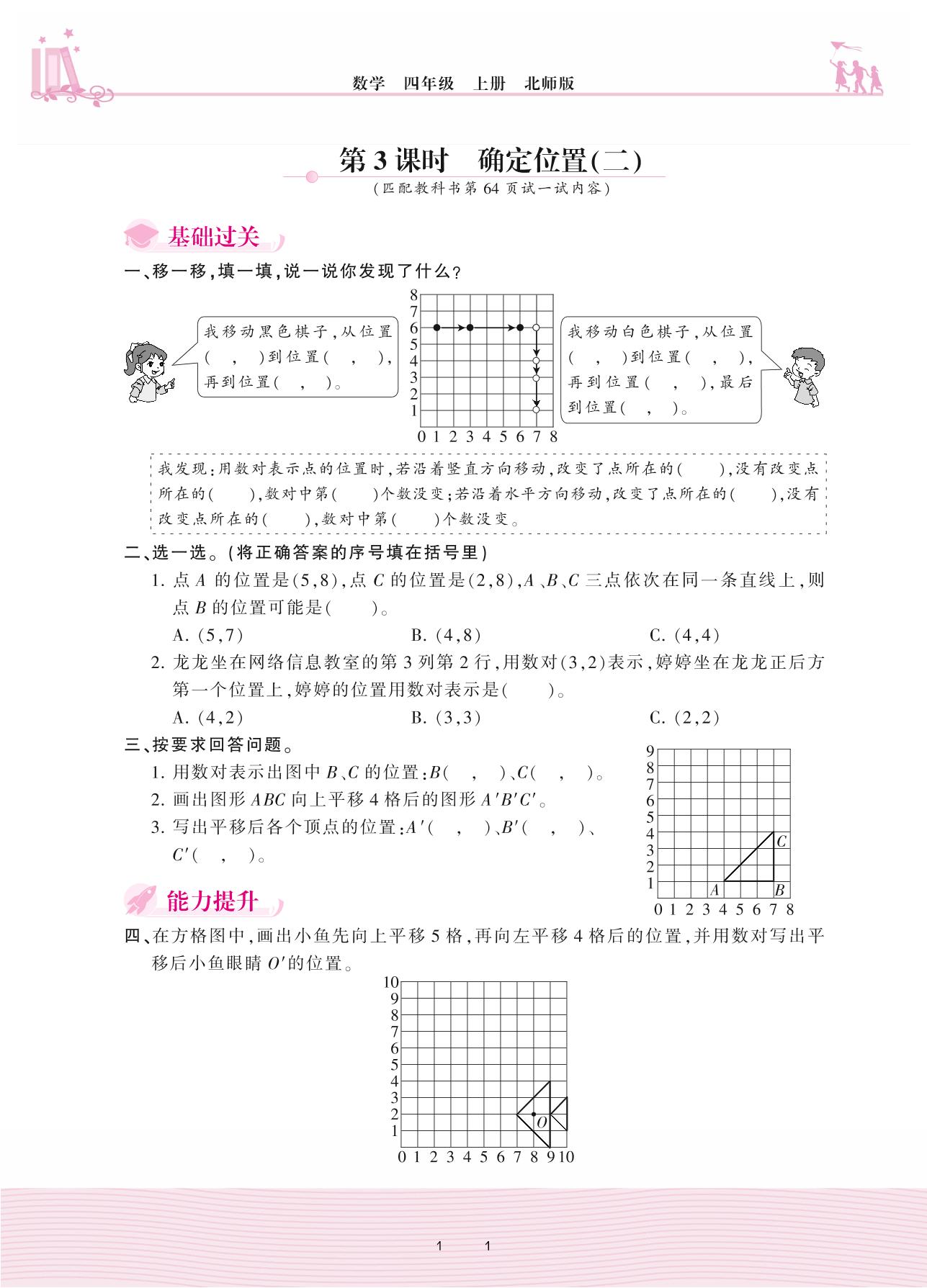 2020上册四年级数学北师版 五 方向与位置—第3课时 确定位置(二)