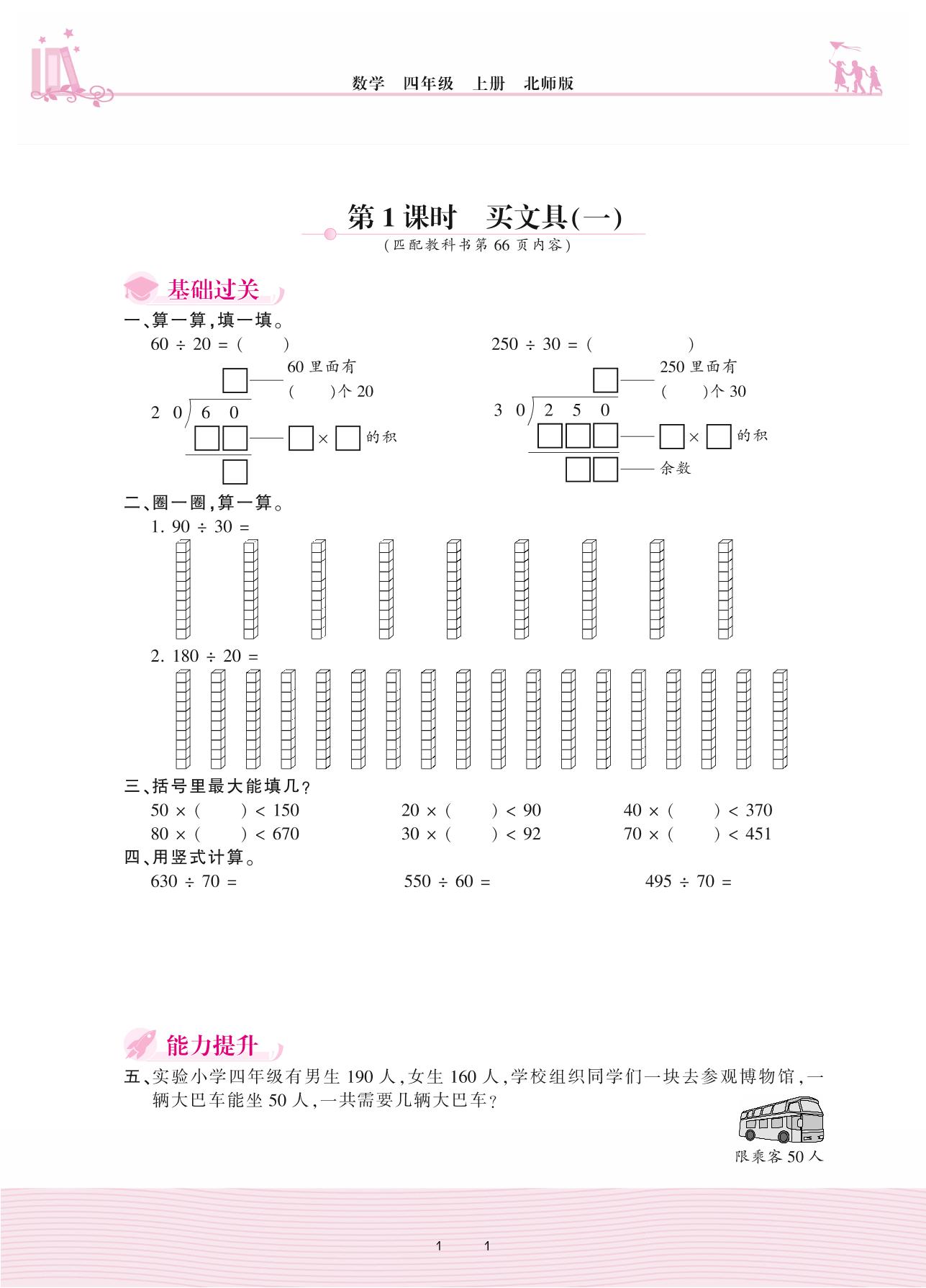 2020上册四年级数学北师版 六 除法—第1课时 买文具(一)