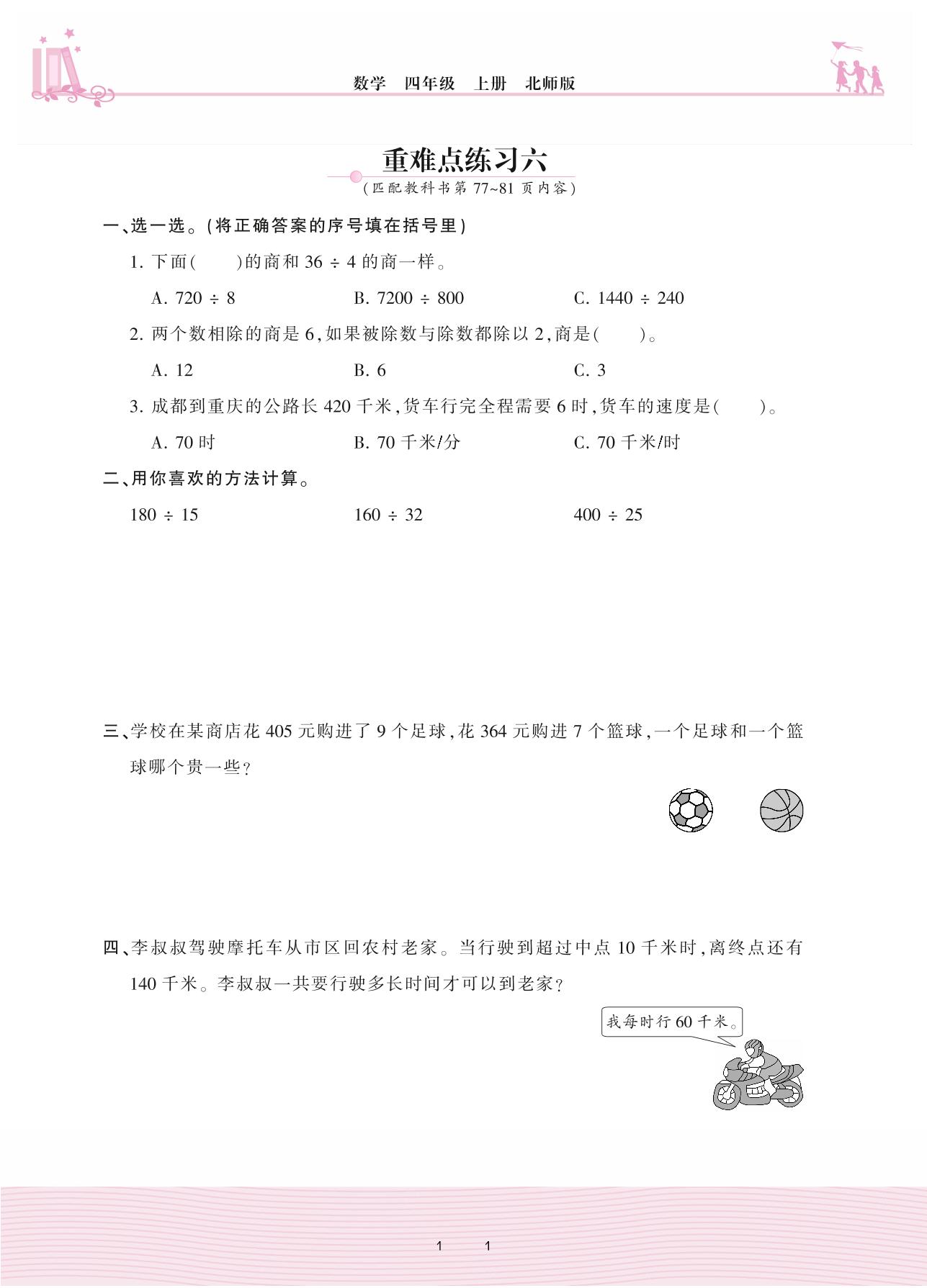 2020上册四年级数学北师版 六 除法—重难点练习六
