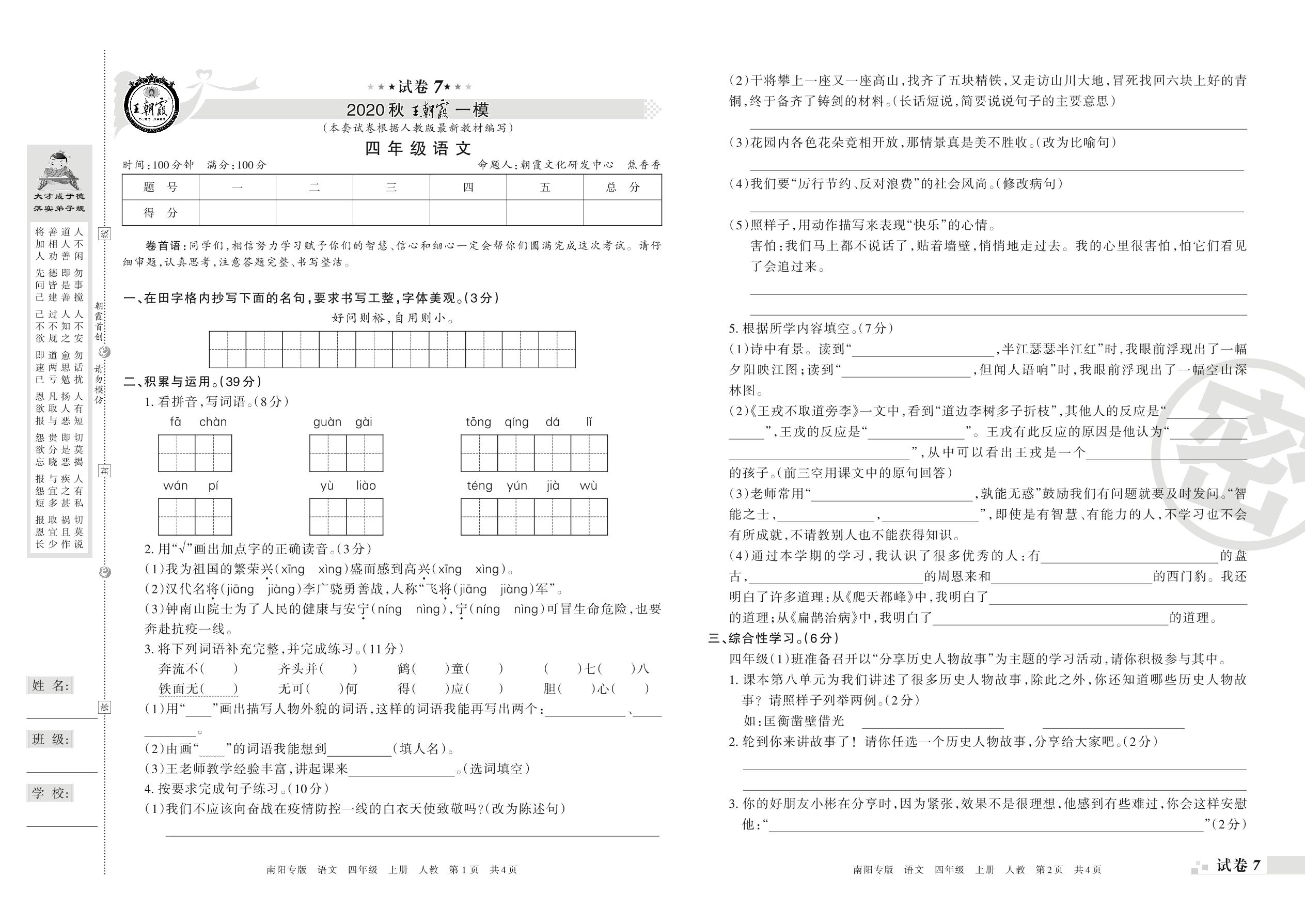 王朝霞期末模拟卷四年级上册语文(人教版)_R210801184753【7】