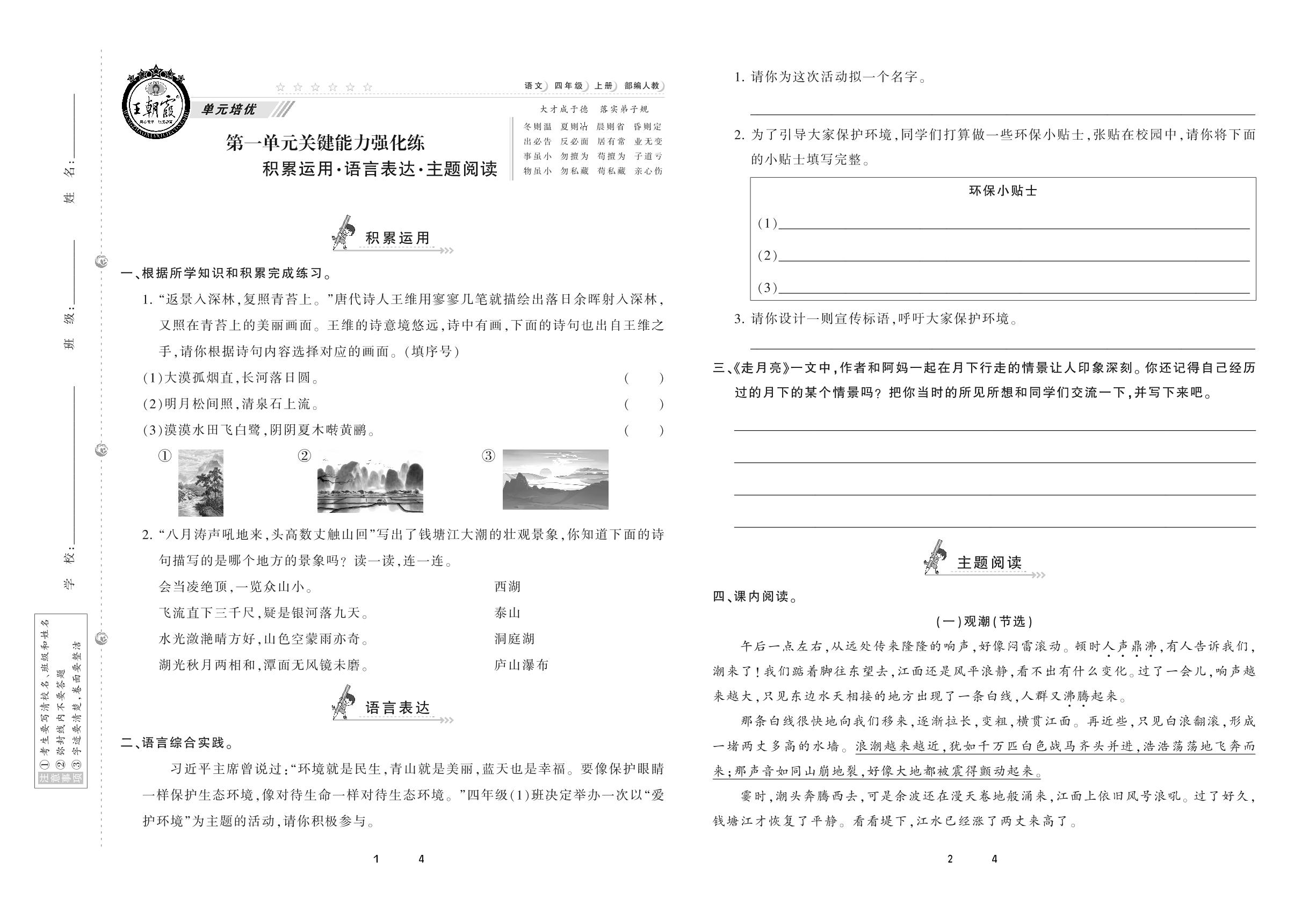 2020上册四年级语文人教版 第一单元 关键能力强化练