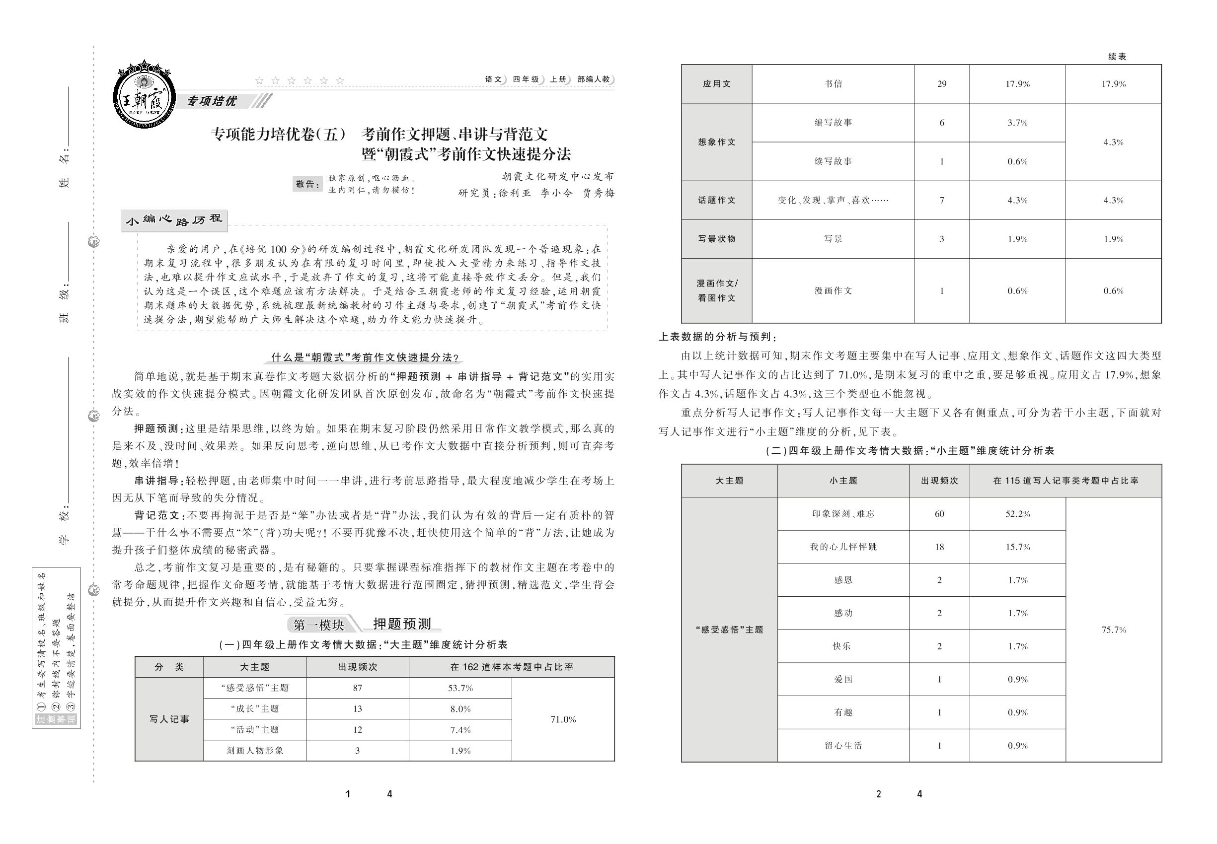 2020上册四年级语文人教版 专项能力培优卷(五)考前作文押题、串讲与背范文暨在“朝霞式”考前作文快速提分法
