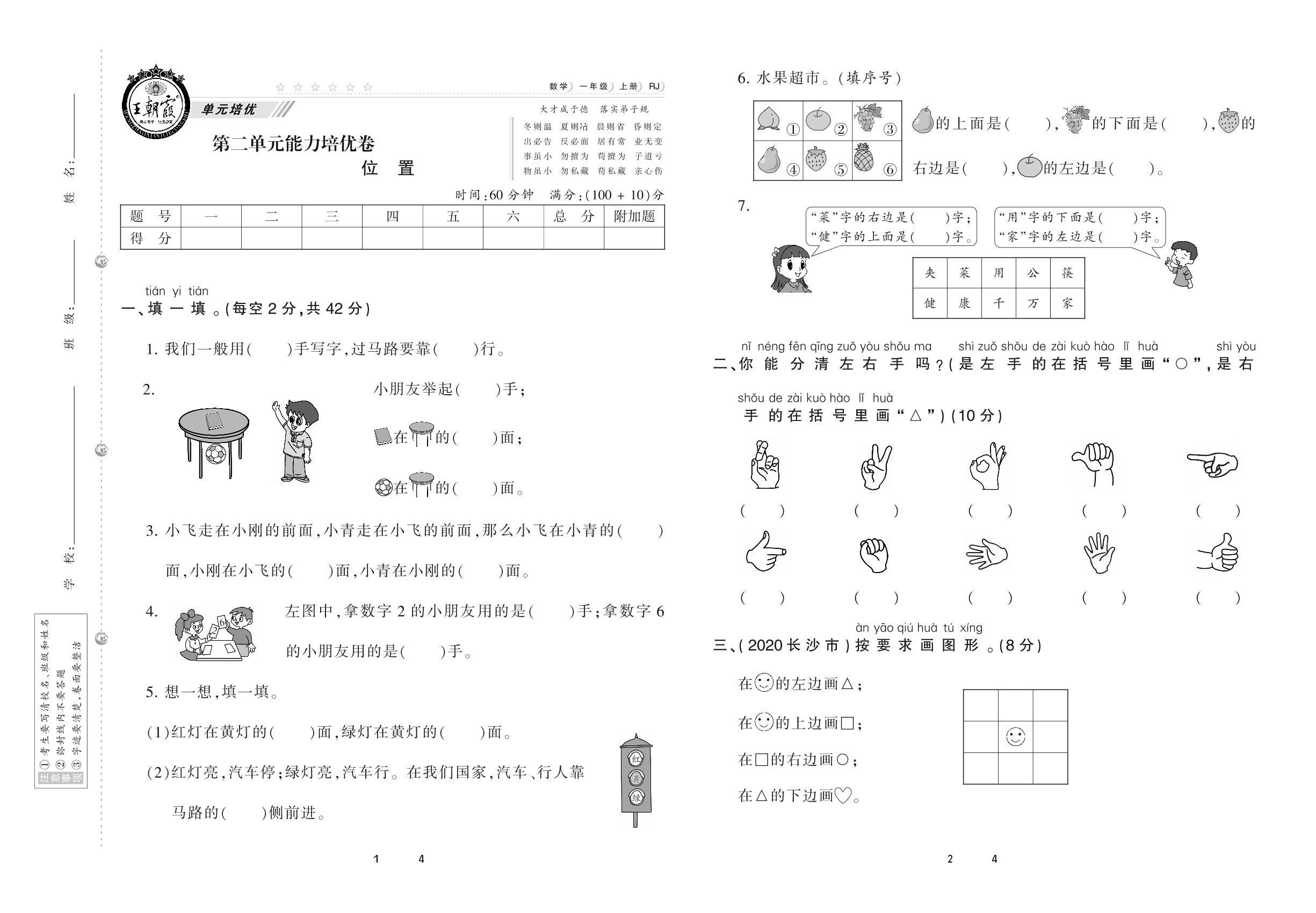 2020上册一年级数学人教版 第二单元 能力培优卷