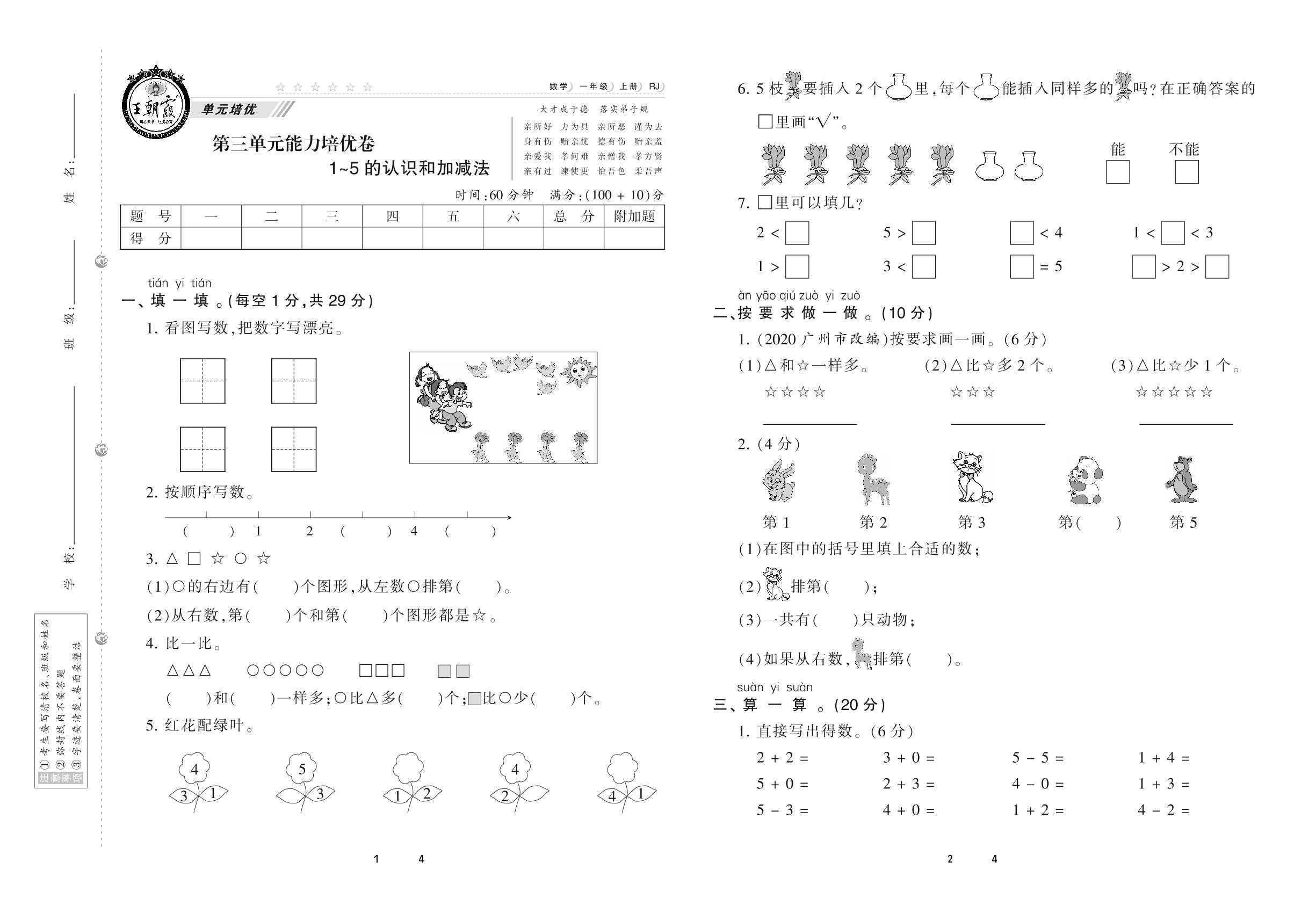 一年级数学人教版上册单元卷