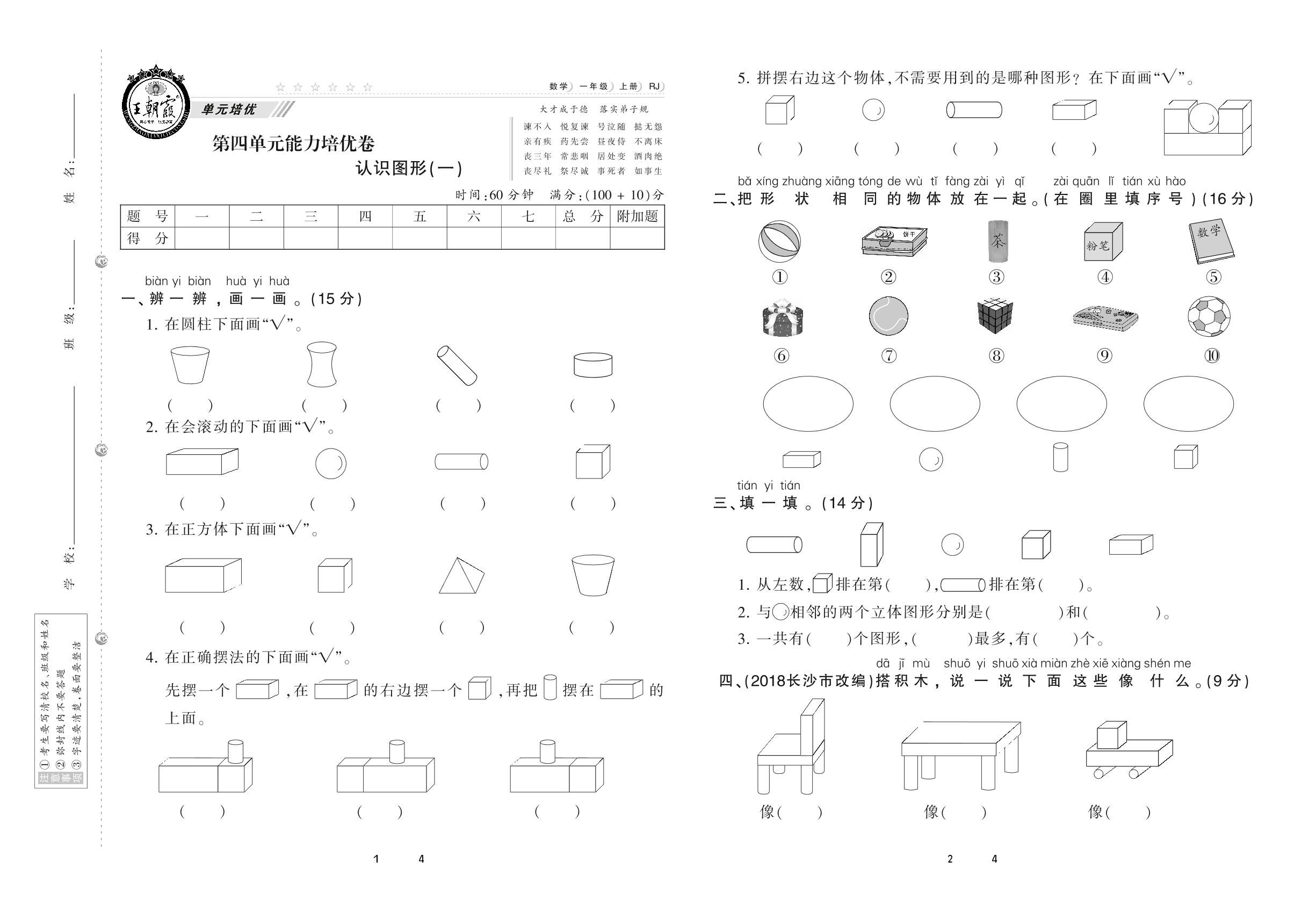 一年级数学人教版上册单元卷