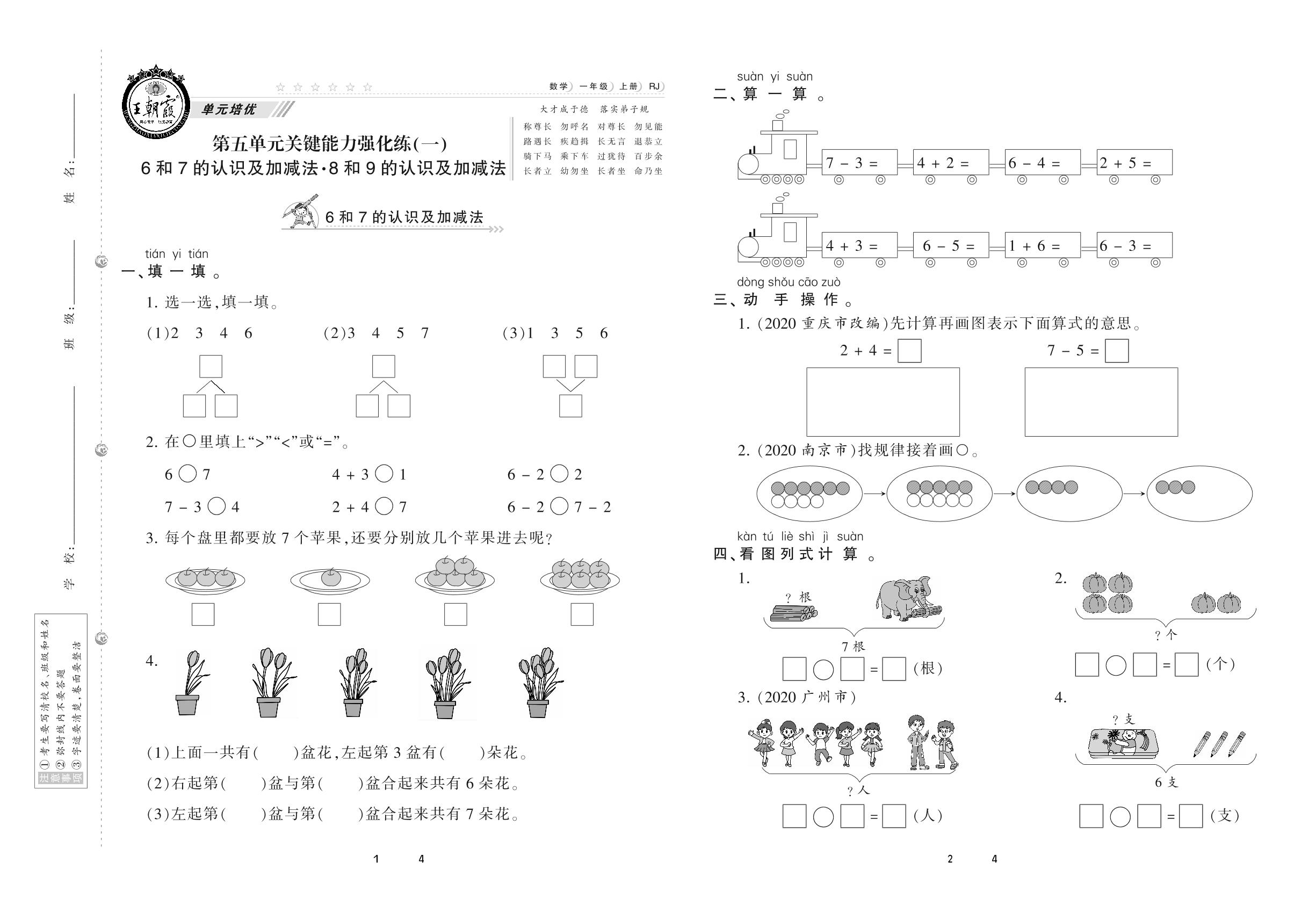 2020上册一年级数学人教版 第五单元 关键能力强化练(一)