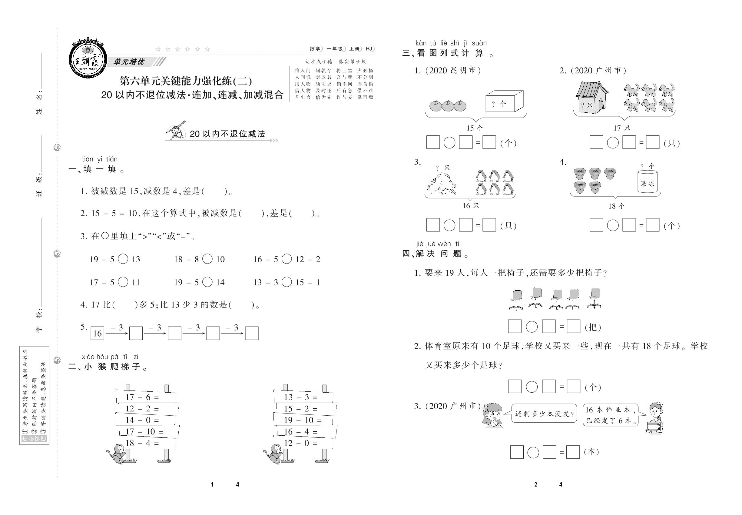 2020上册一年级数学人教版 第六单元 关键能力强化练(二)