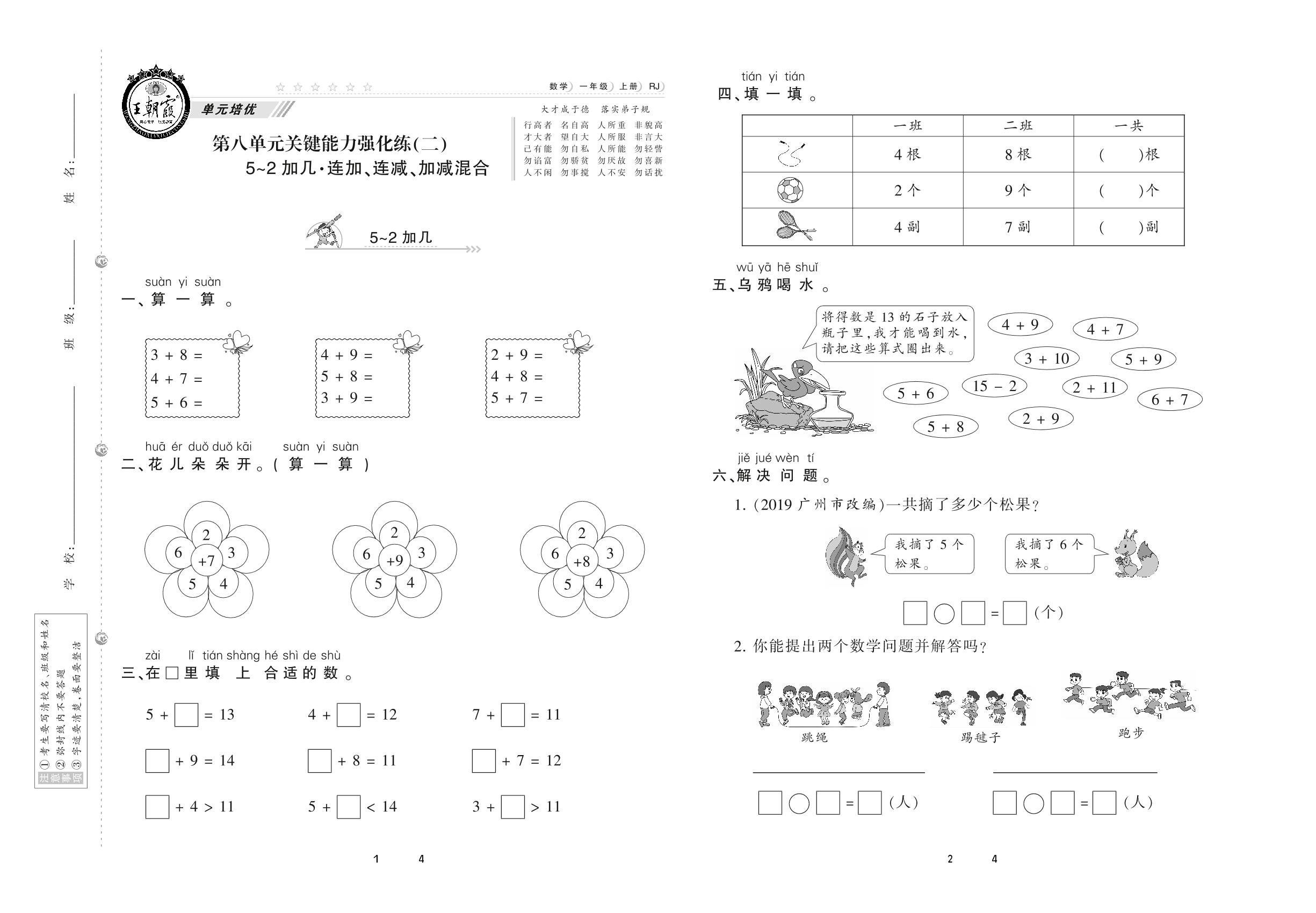2020上册一年级数学人教版 第八单元 关键能力强化练(二)