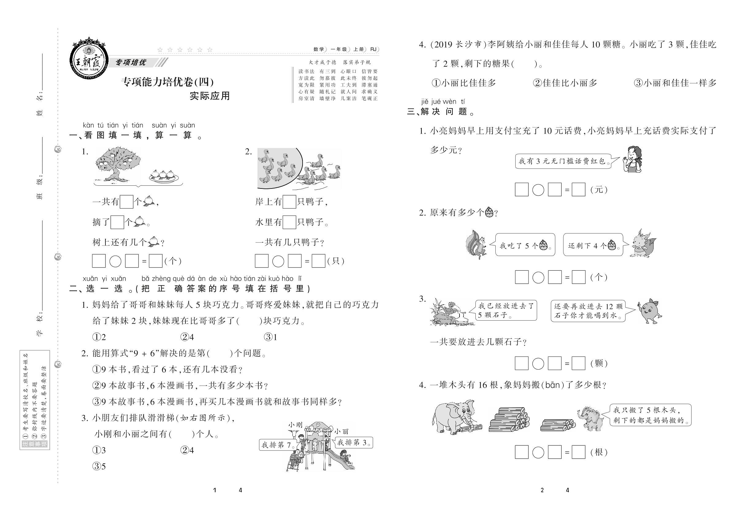 2020上册一年级数学人教版 专项能力培优卷(四) 实际应用