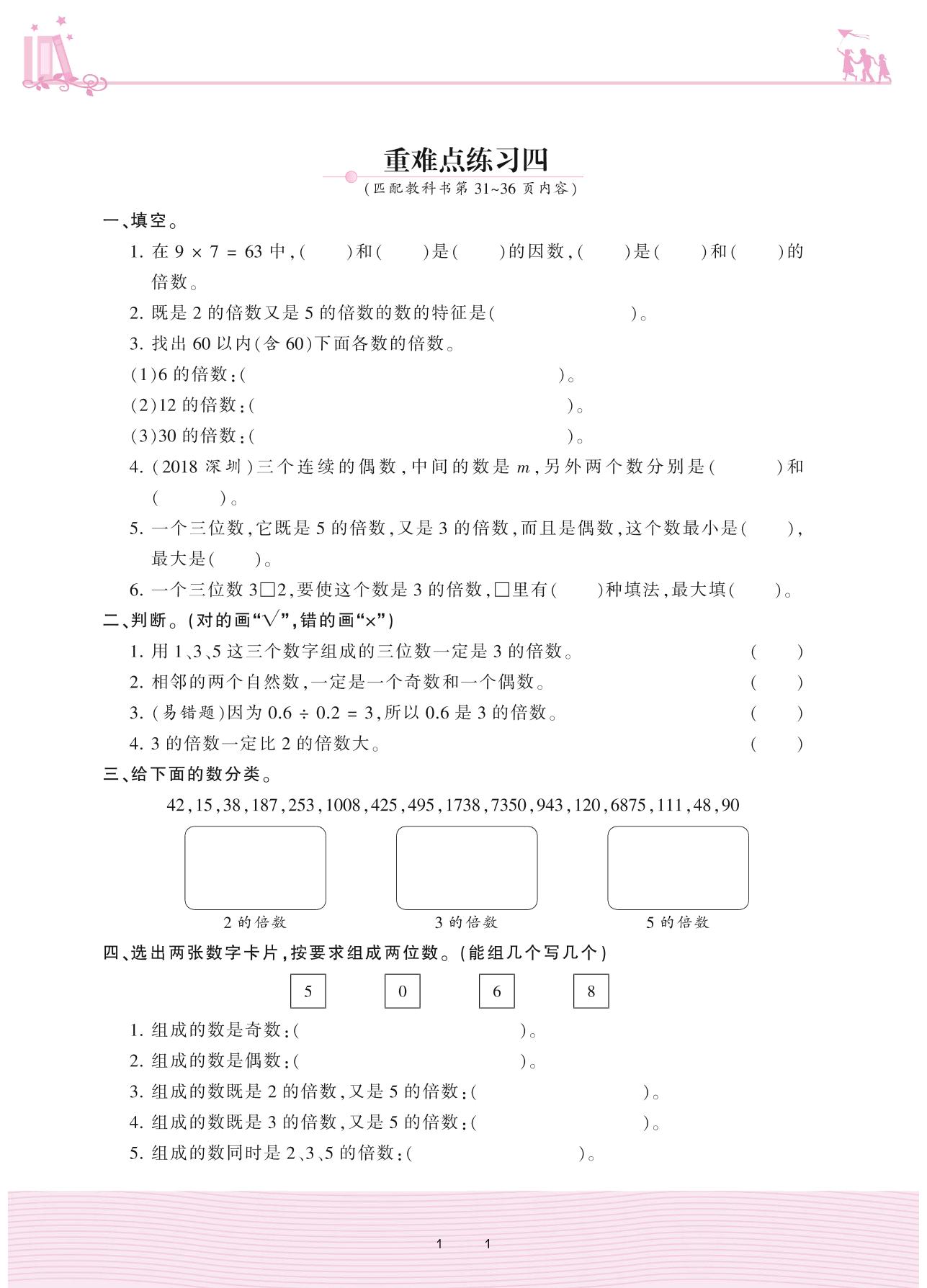 2020上册五年级数学北师版 三 倍数与因数——重难点练习四