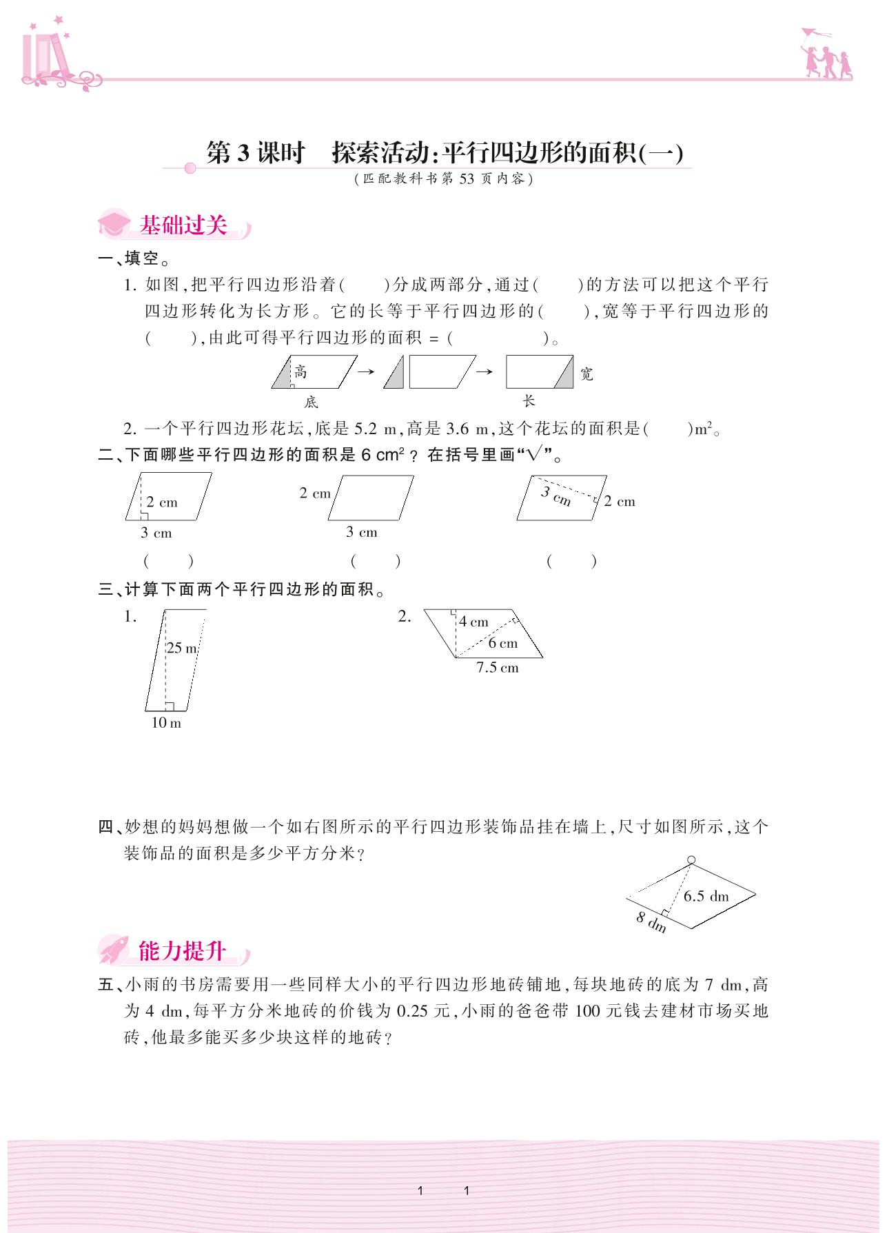 2020上册五年级数学北师版 四 多边形的面积——第3课时 探索活动:平行四边形的面积(一)