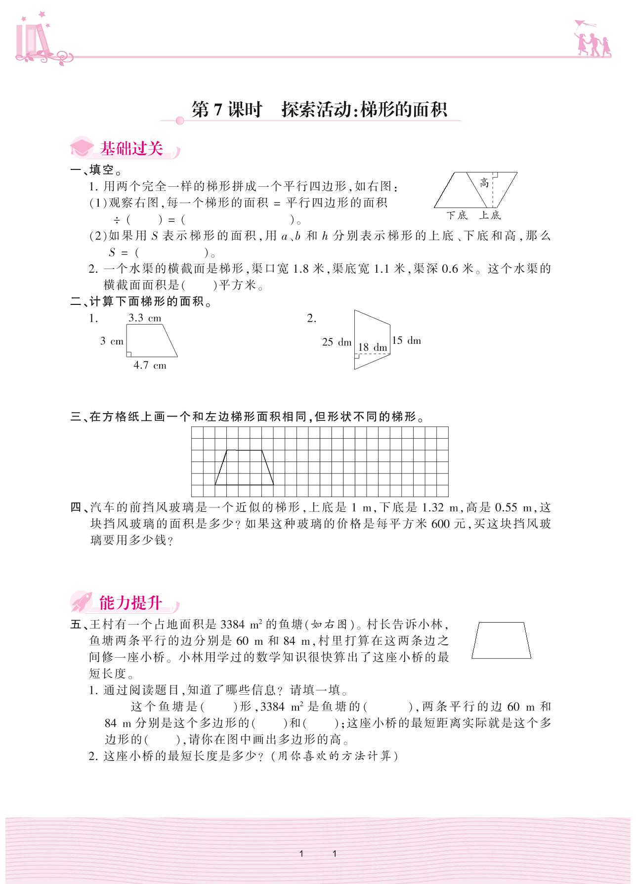 2020上册五年级数学北师版 四 多边形的面积——第7课时 探索活动:梯形的面积