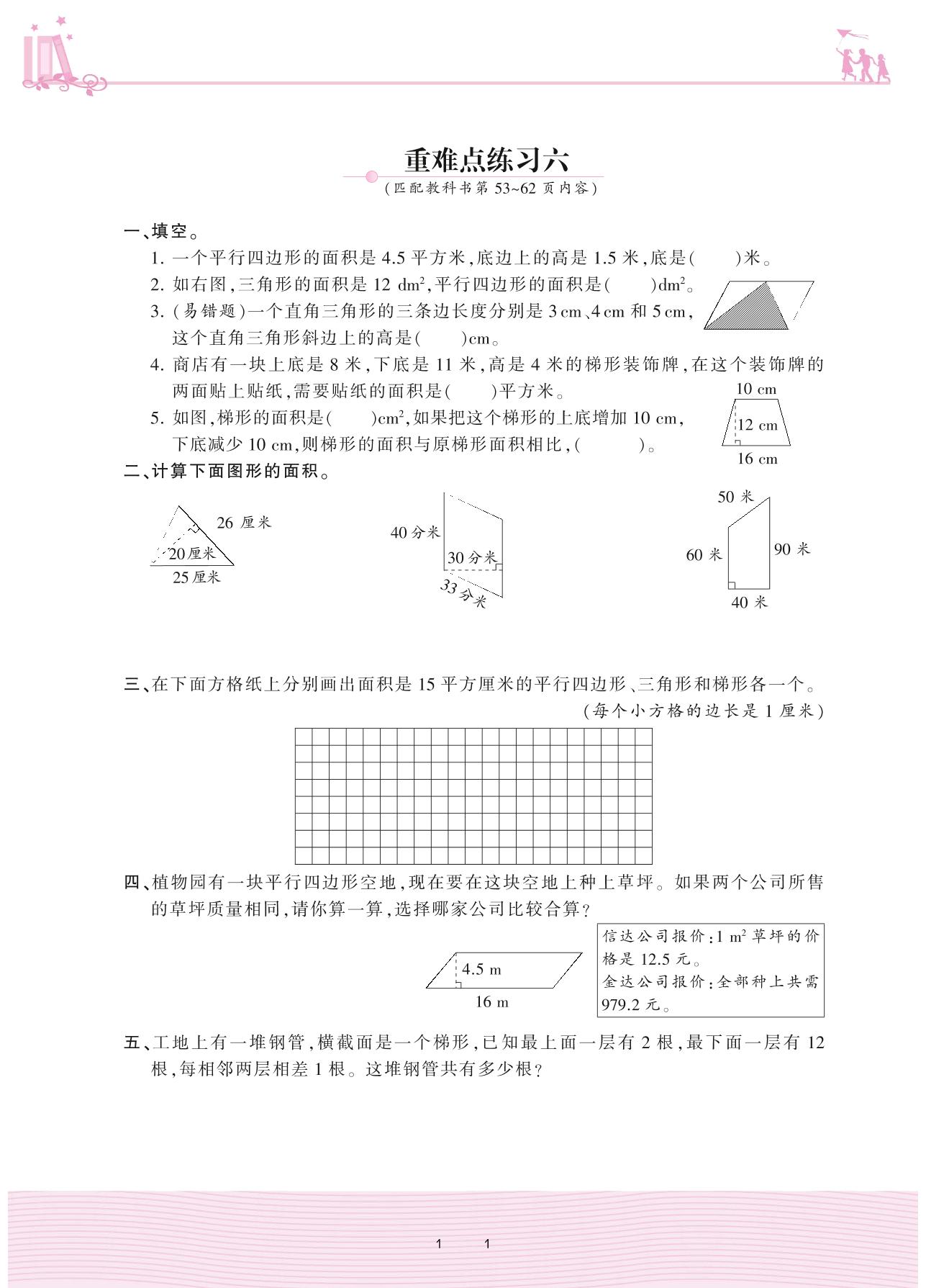 2020上册五年级数学北师版 四 多边形的面积——重难点练习六