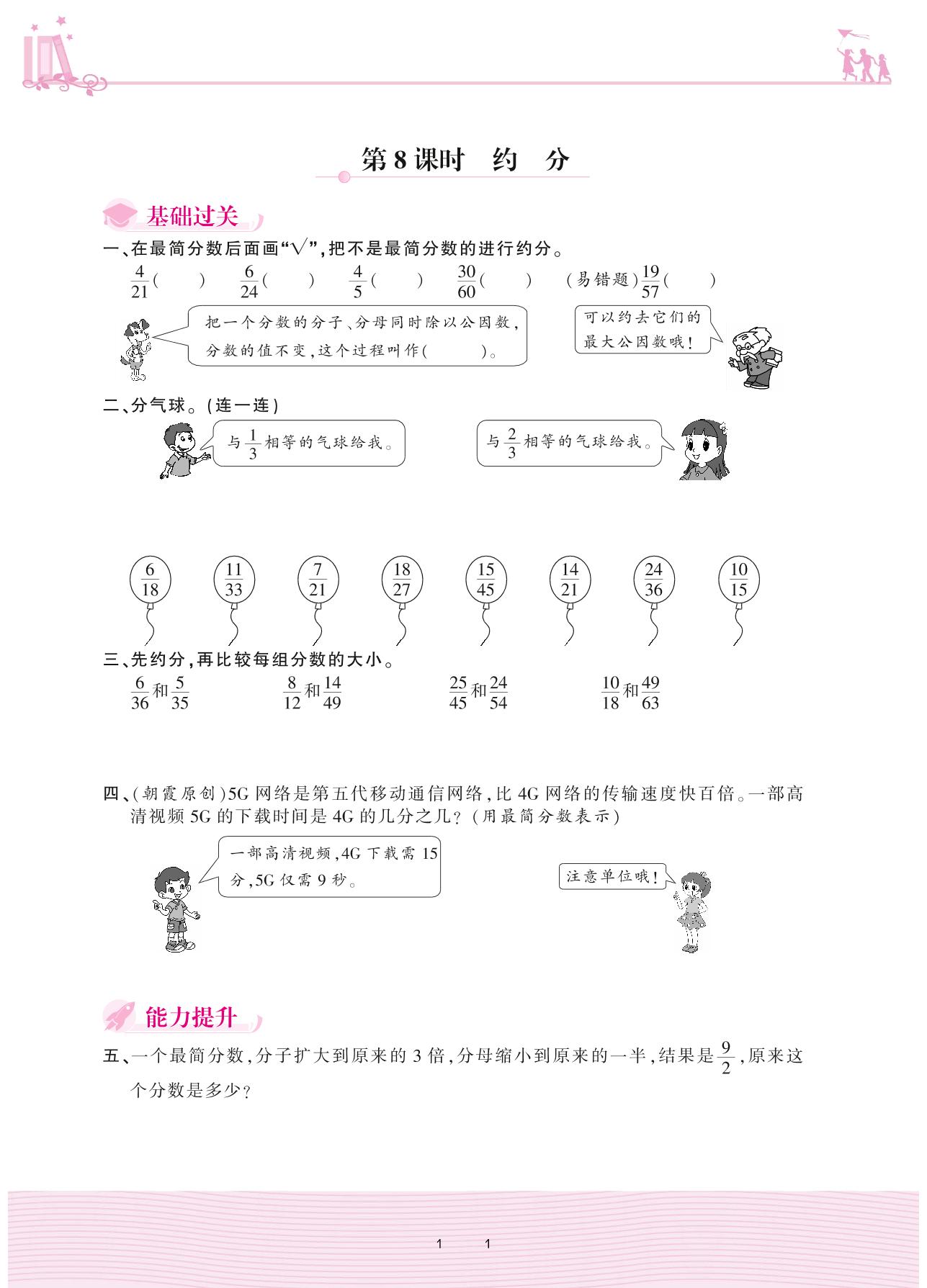2020上册五年级数学北师版 五 分数的意义——第8课时 约分