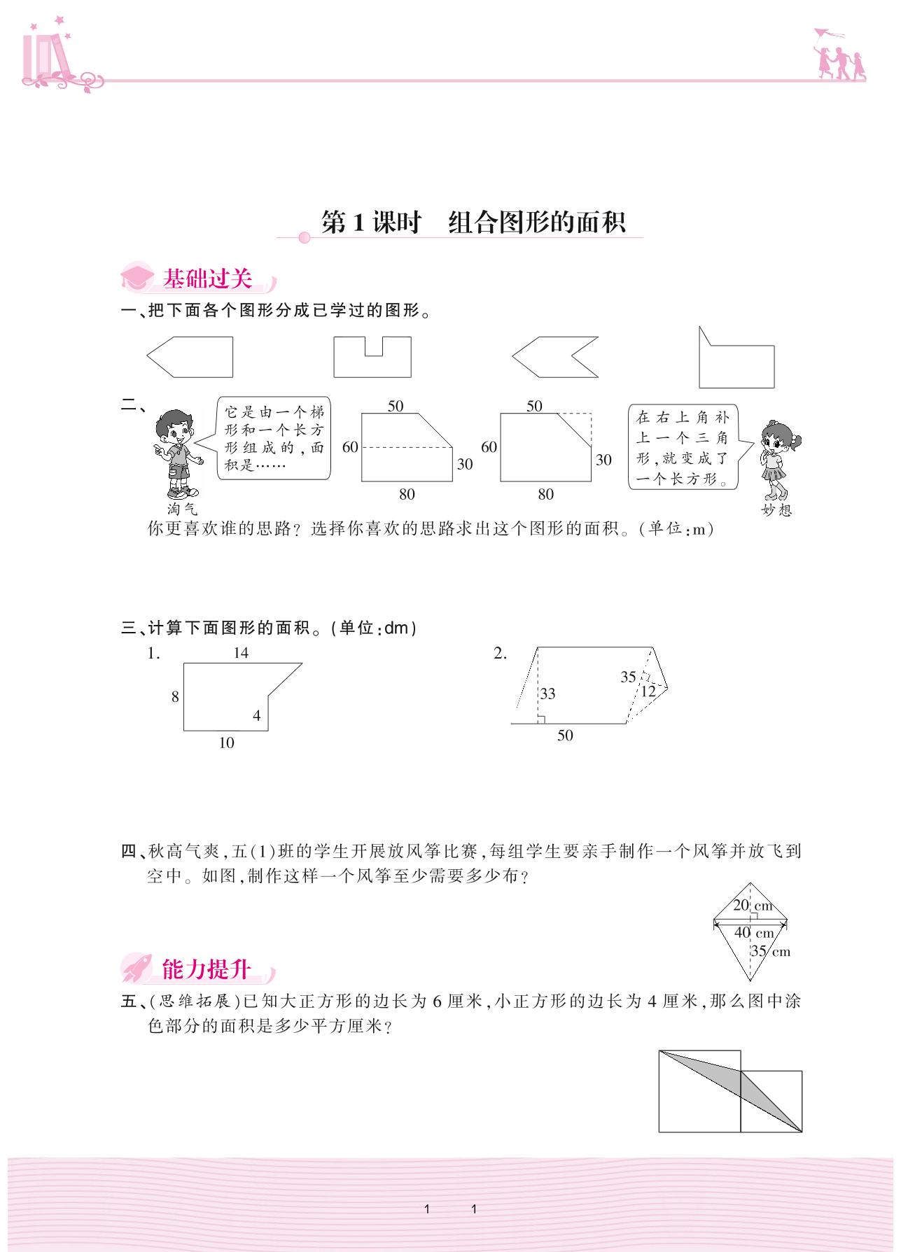 2020上册五年级数学北师版 六 组合图形的面积——第1课时 组合图形的面积