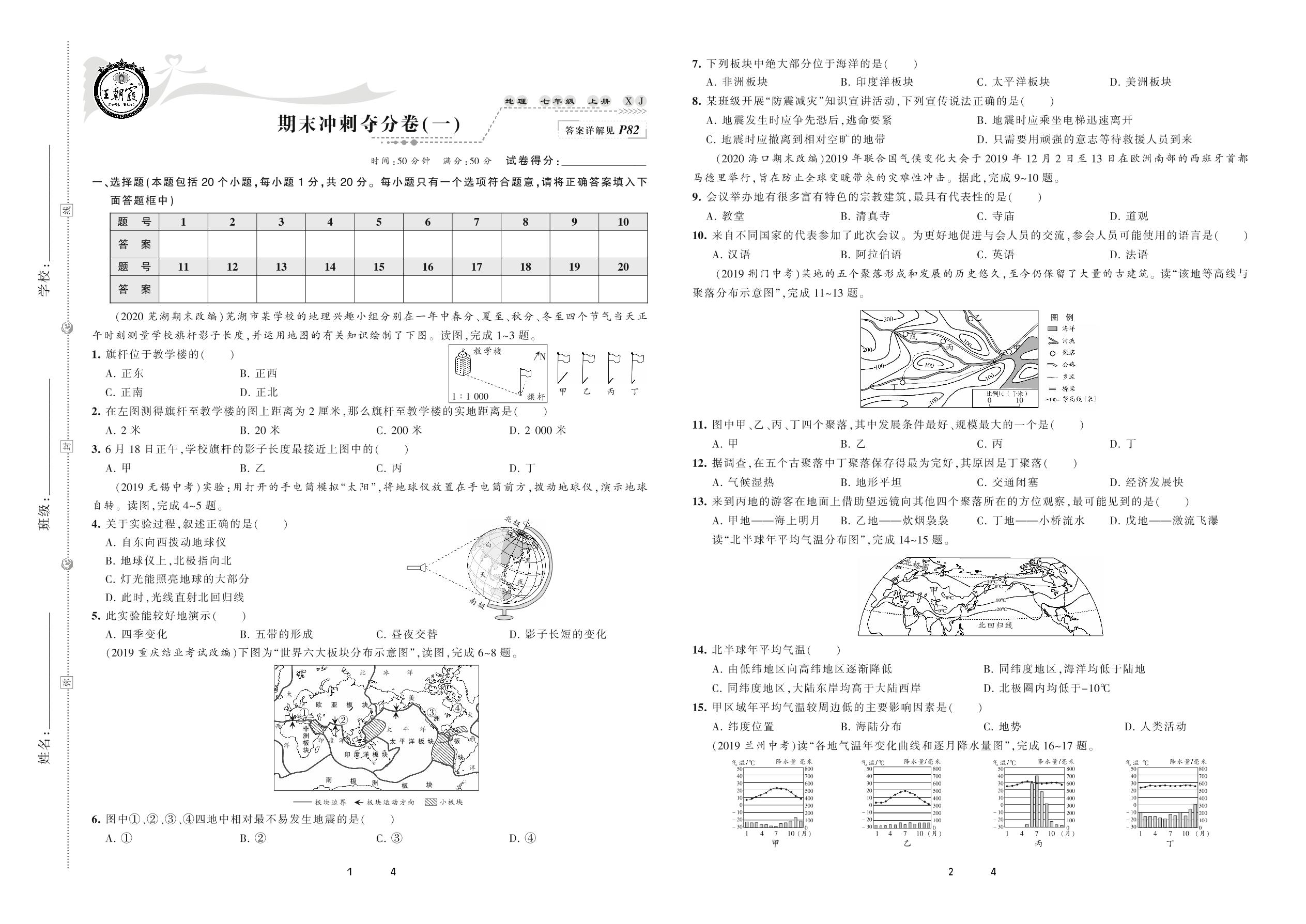 2020上册七年级地理湘教版 期末冲刺夺分卷(一)