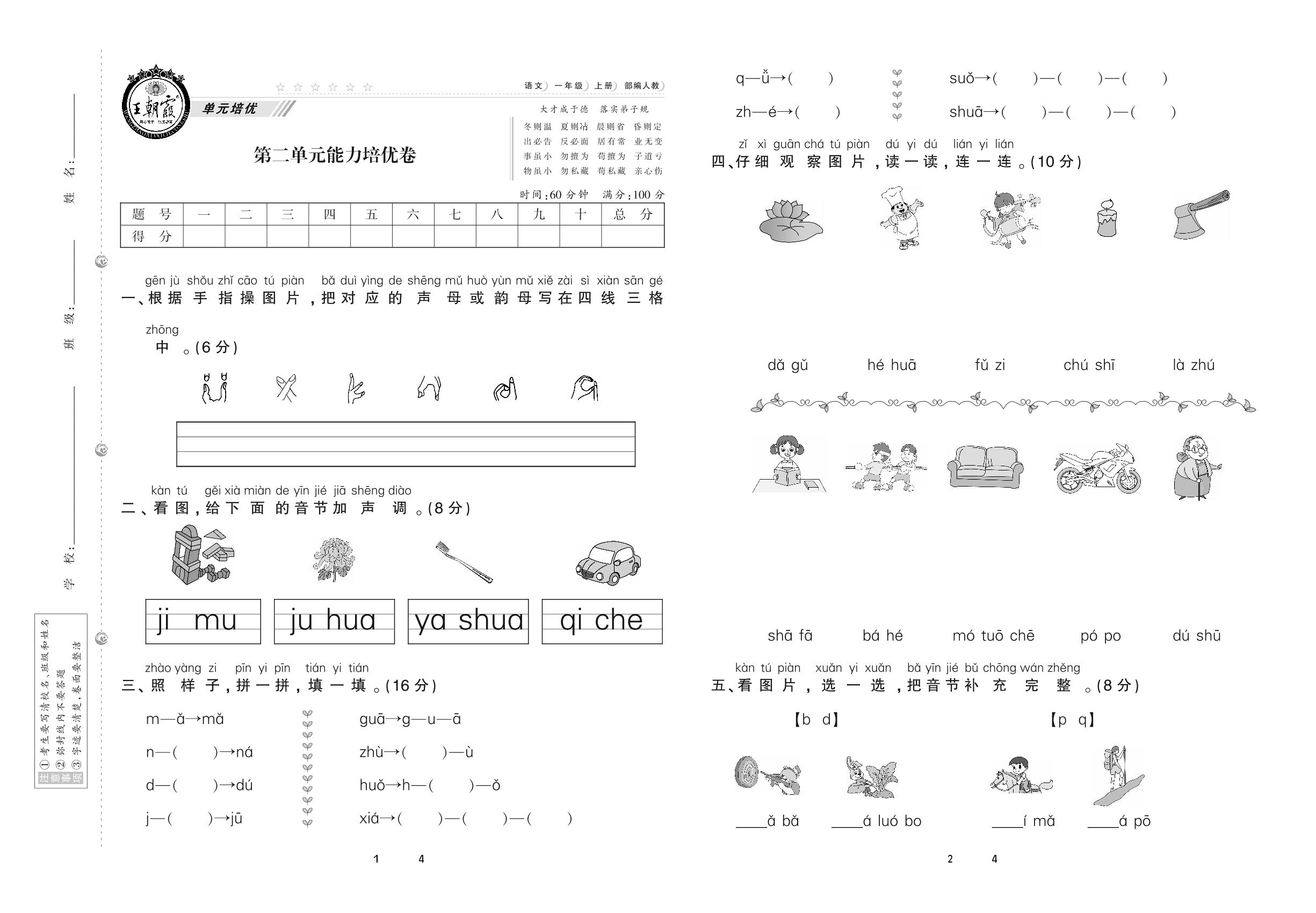 2020上册一年级语文人教版 第二单元 能力培优卷