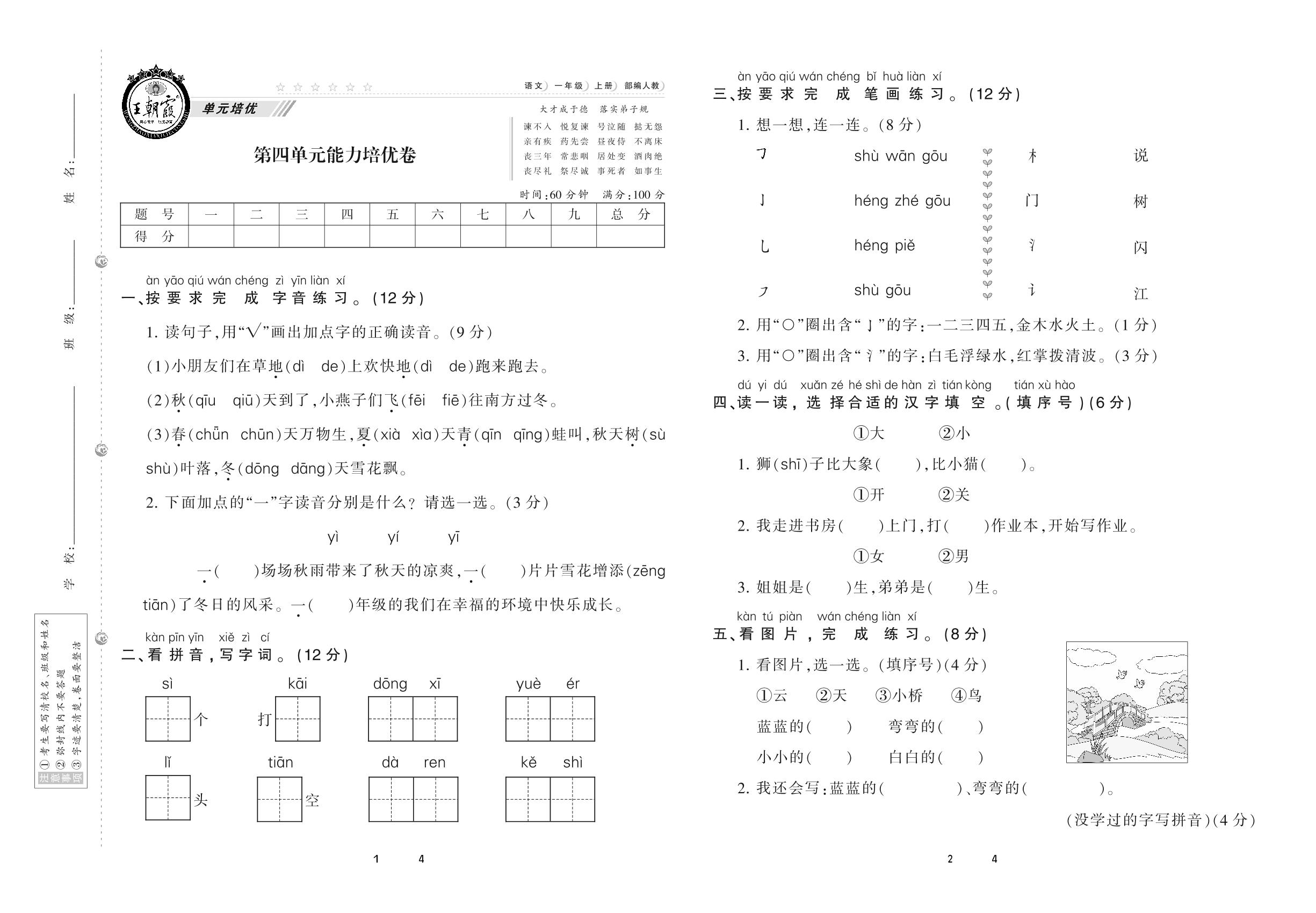 2020上册一年级语文人教版 第四单元 能力培优卷