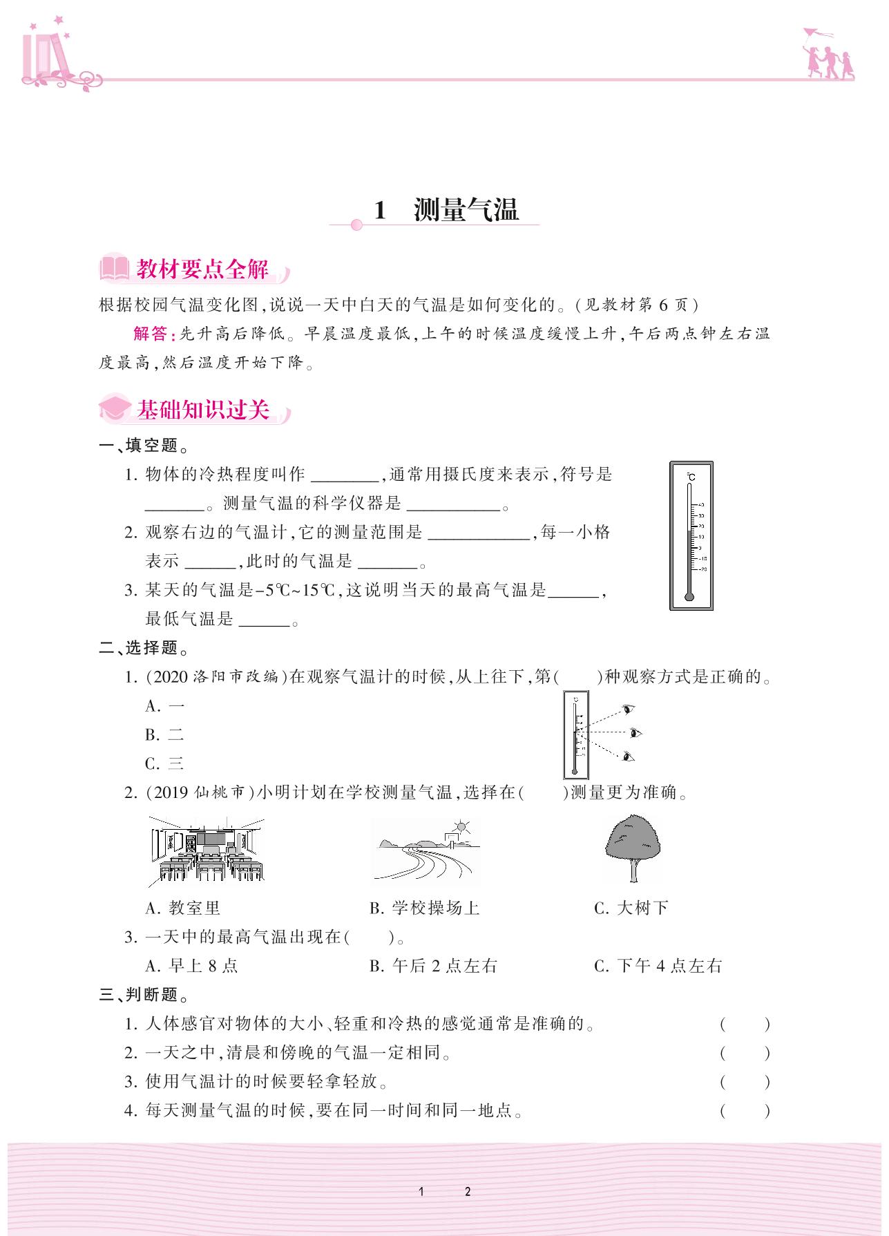 2020上册三年级科学大象版 第一单元 小小气象员——1 测量气温