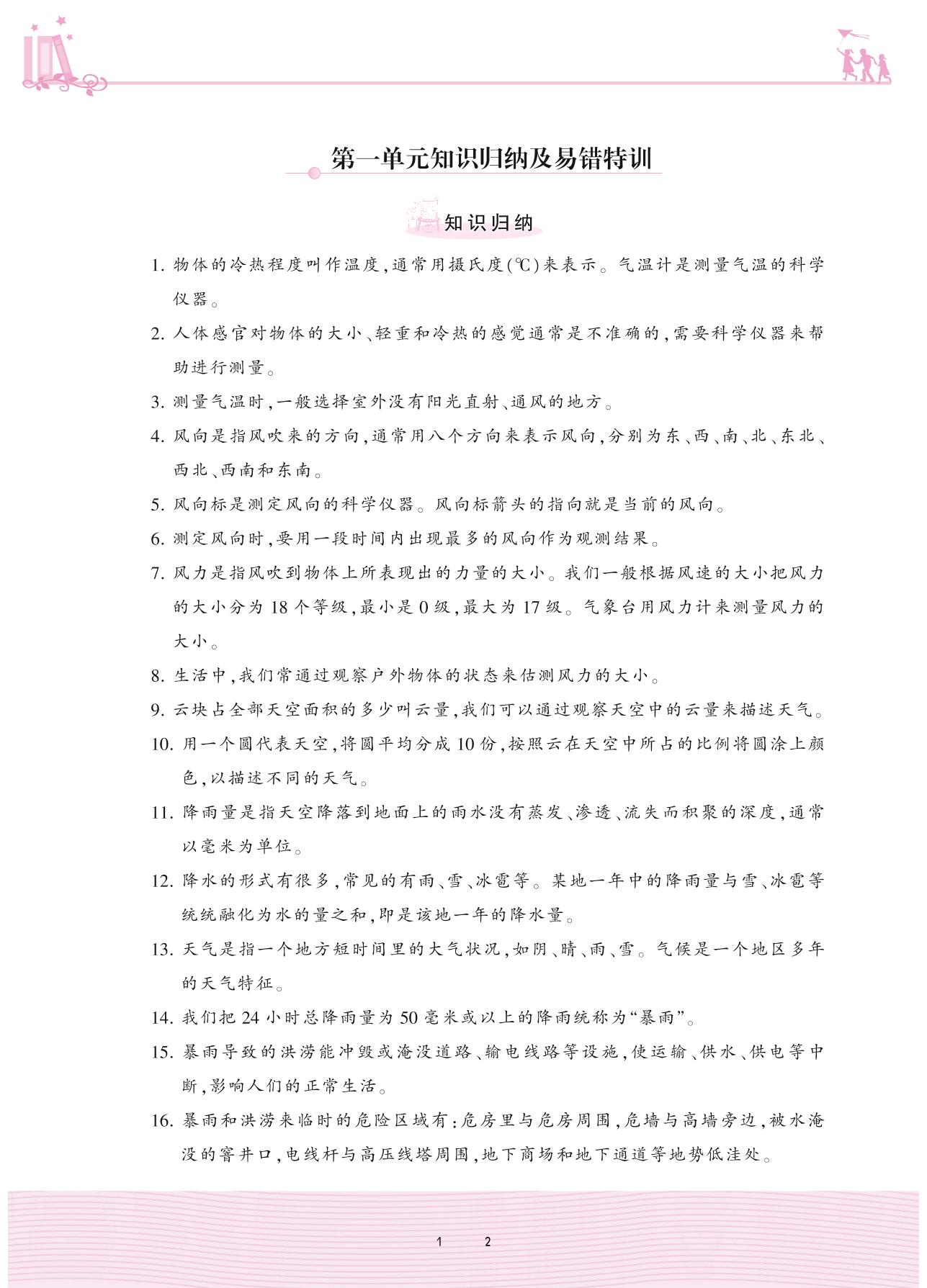 2020上册三年级科学大象版 第一单元知识归纳及易错特训