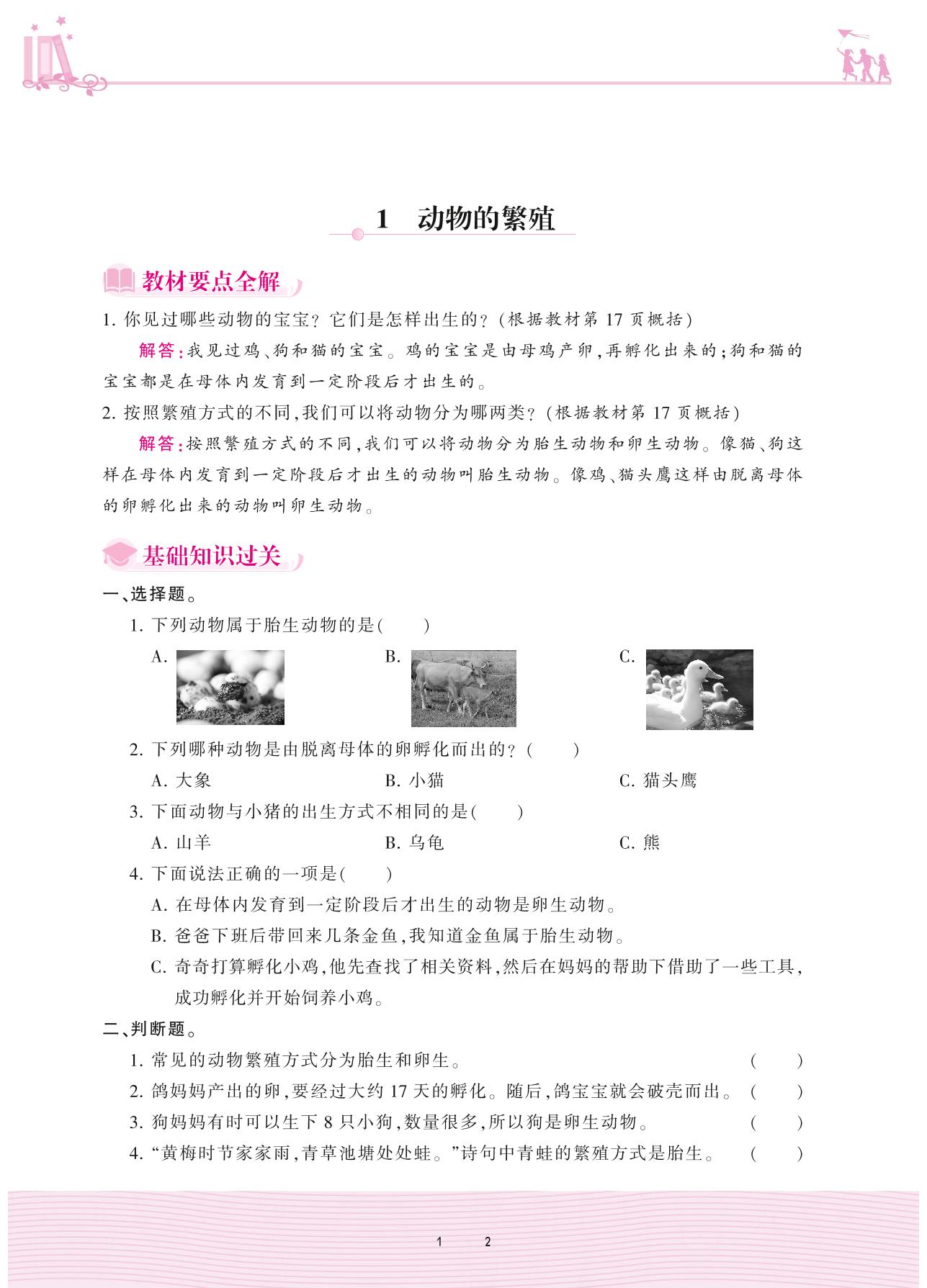 2020上册三年级科学大象版 第二单元 动物的特征——1 动物的繁殖
