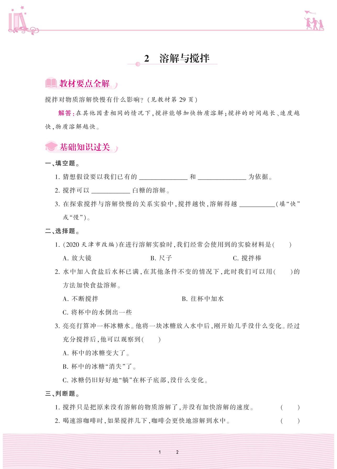 2020上册三年级科学大象版 第三单元 溶解的秘密——2 溶解与搅拌