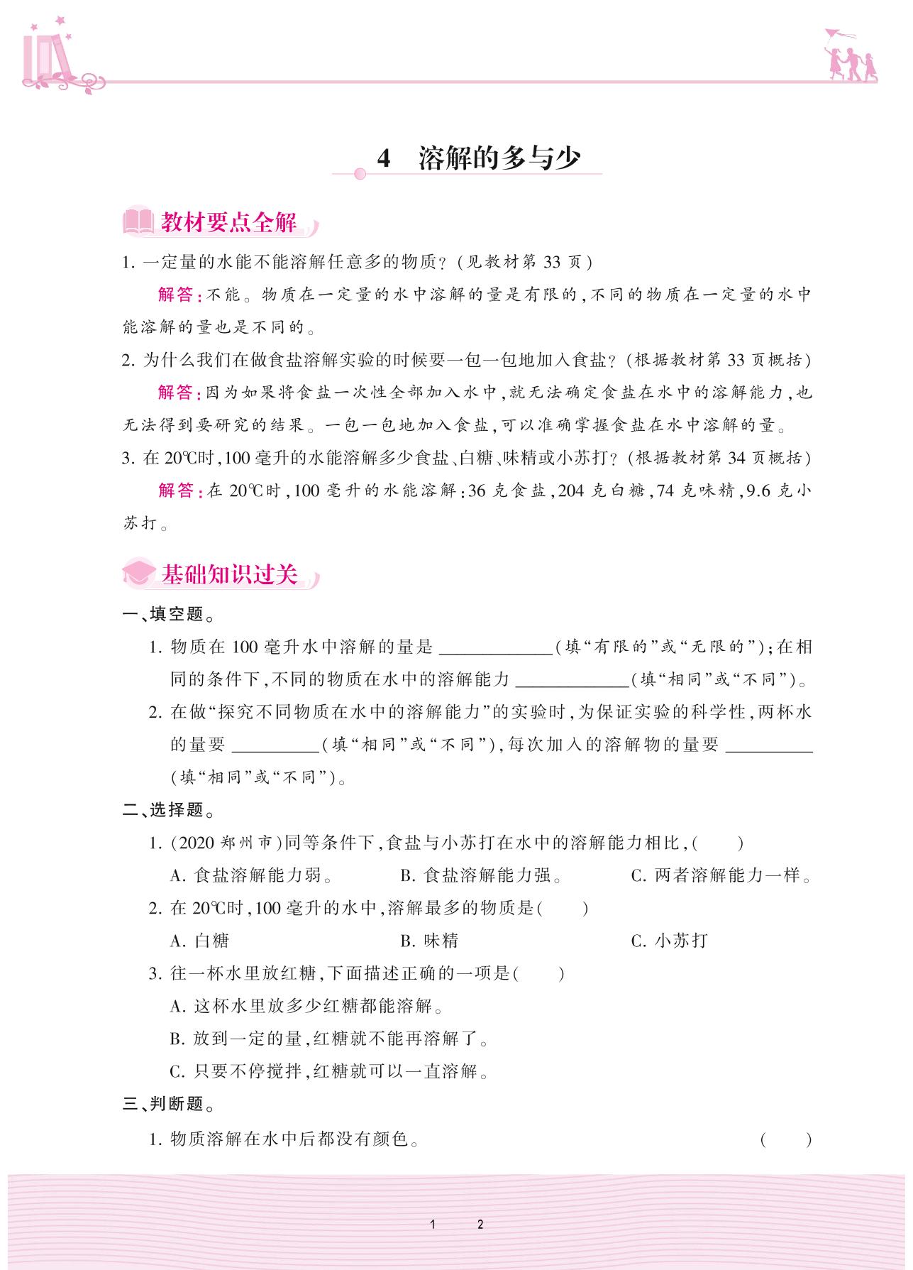 2020上册三年级科学大象版 第三单元 溶解的秘密——4 溶解的多与少